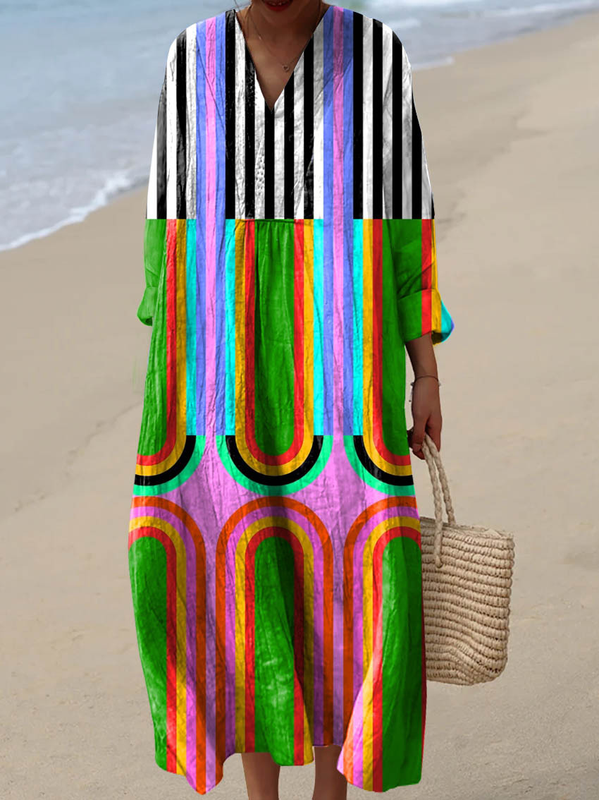 Women's Abstract Geometric Pattern Art Print Cotton Dress