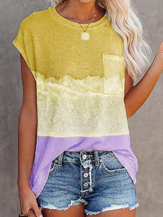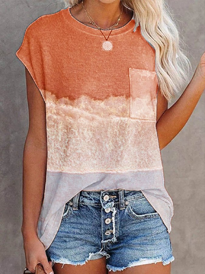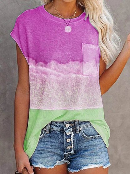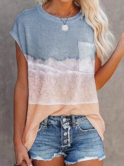 Women's Contrasting Gradient Ocean Print Casual T-Shirt