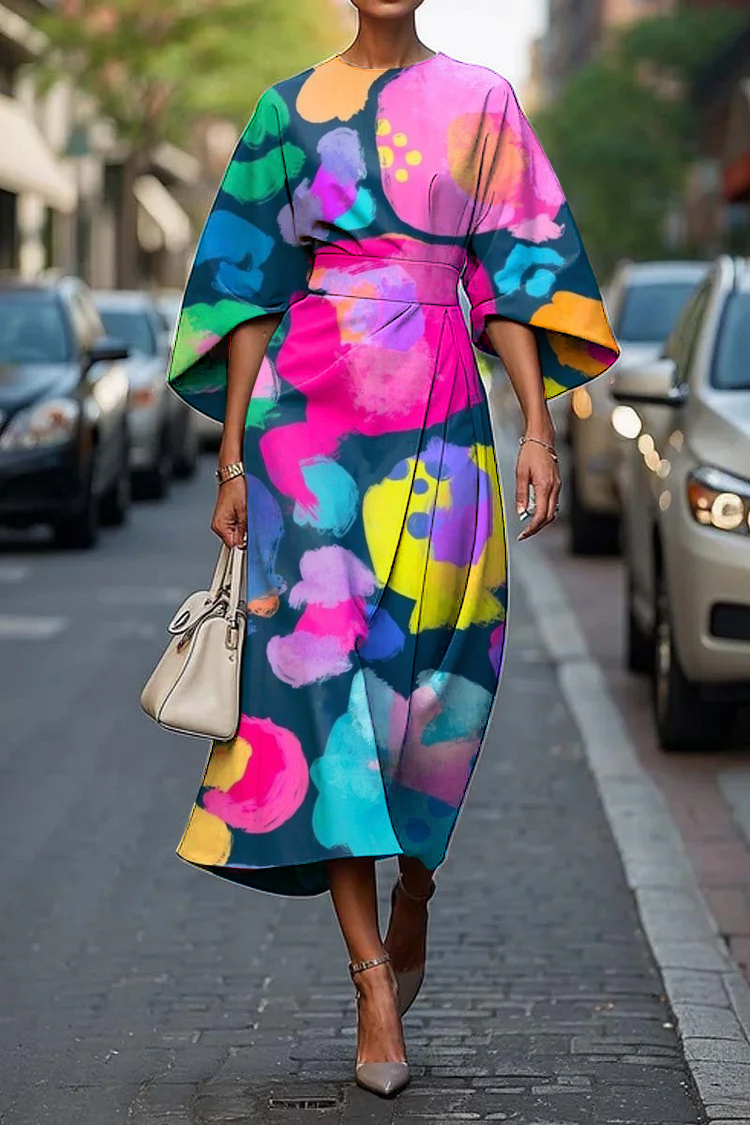Women's Elegant Color Art Print Midi Dress