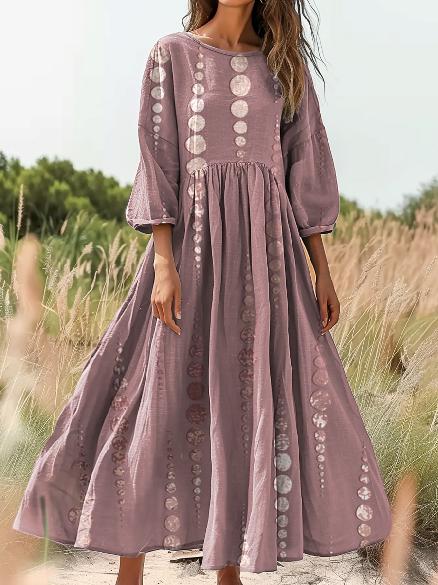 Women's Ethnic Polka Dot Art Print Flowy Cotton Crew Neck Dress
