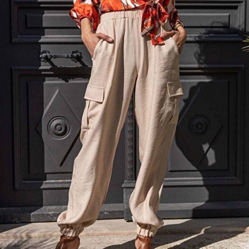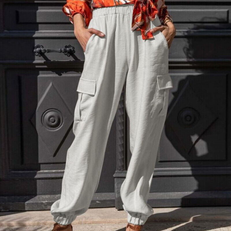 Women's Fashion Cotton Linen Casual Pocket Loose Sports Cargo Pants