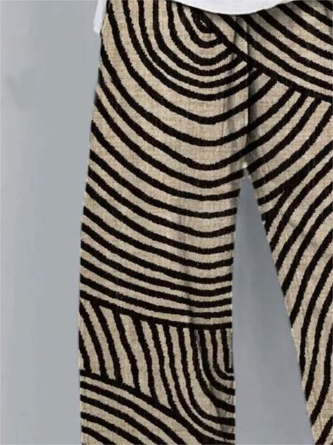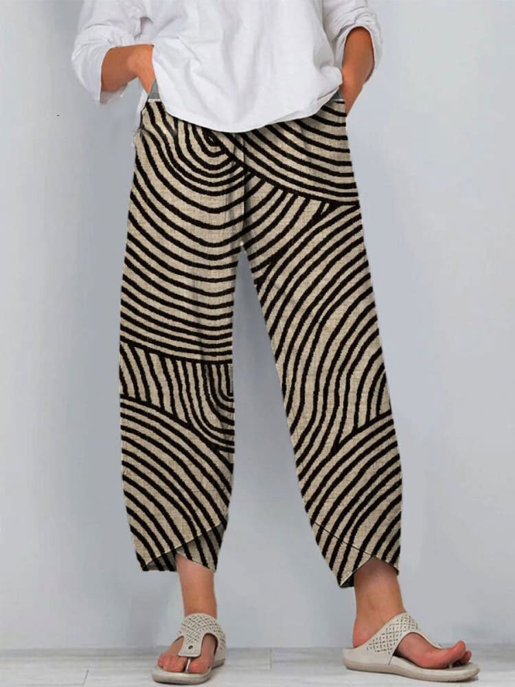 Women's Hand Drawn Round Line Printed Cotton And Linen Casual Pants