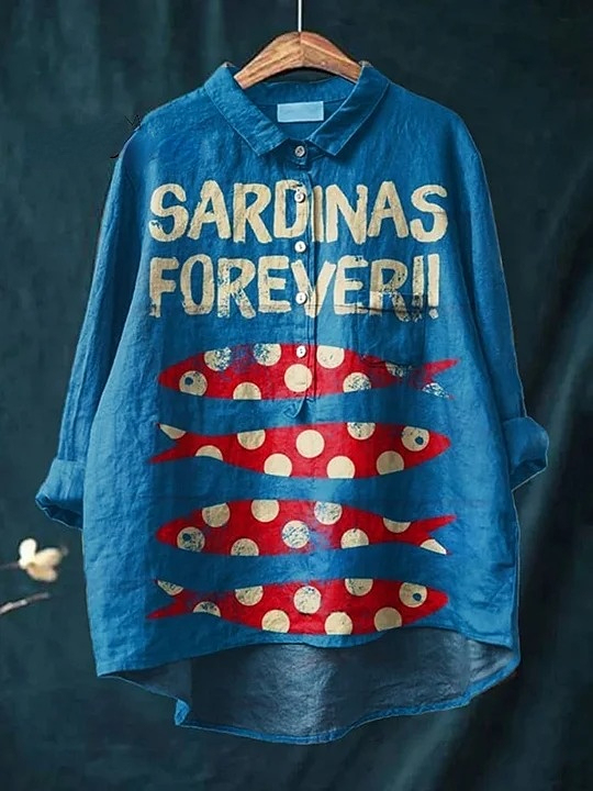 Women's Sanrdinas Forever Fish Art Print Casual Cotton And Linen Shirt