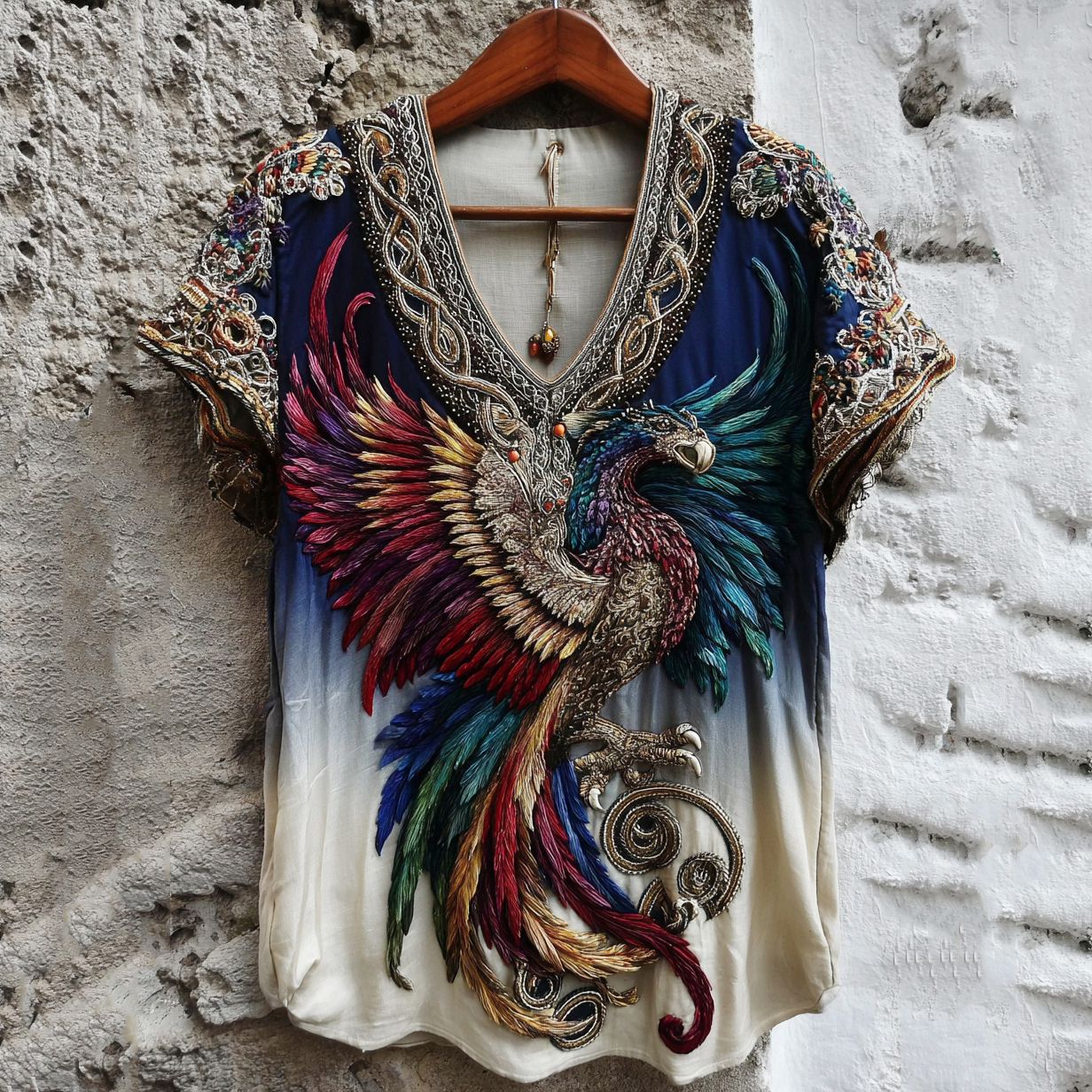 Women's Vintage Viking Celtic Knot Phoenix Art Pattern Linen Shirt