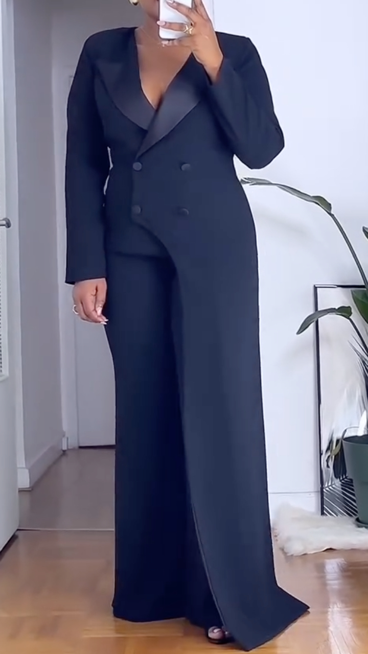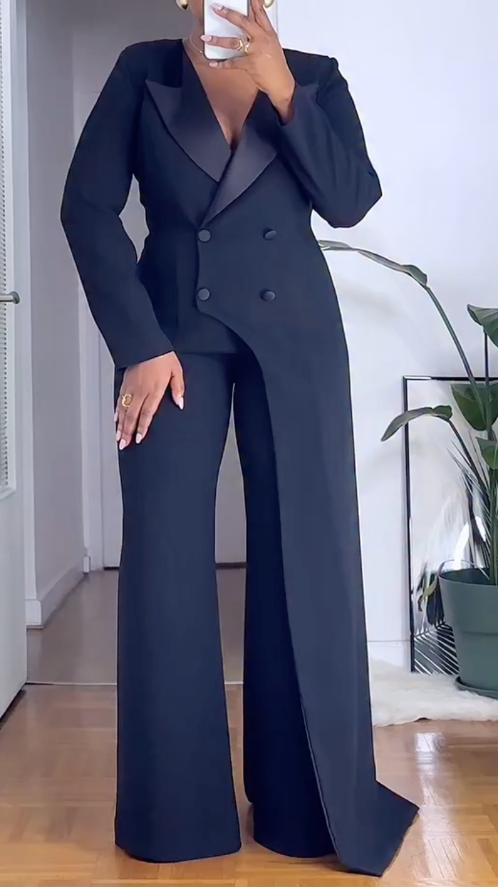 Lapel Double-Breasted Irregular Wide-Leg Suit