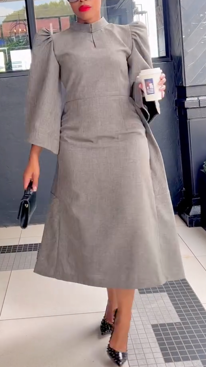 Women's Stand Collar Puff Sleeve Elegant Dress