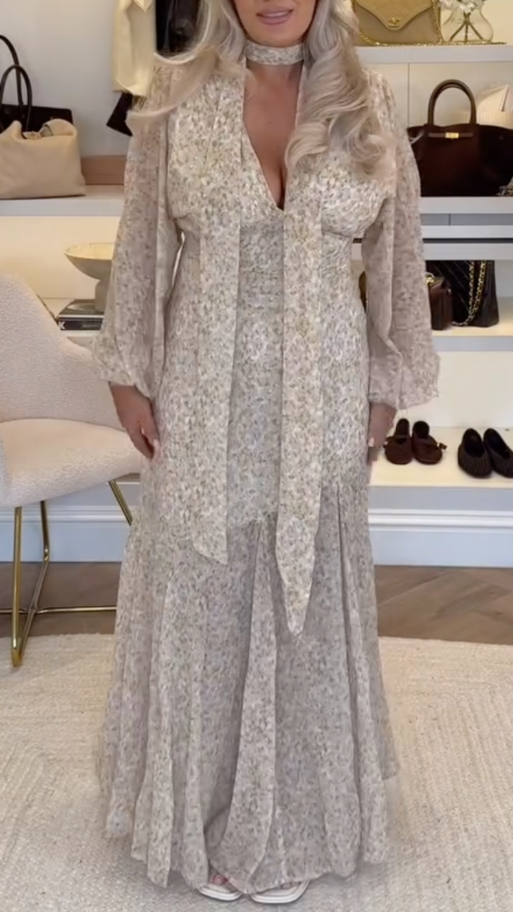 Women's Floral Print Lantern Sleeve Fishtail Dress