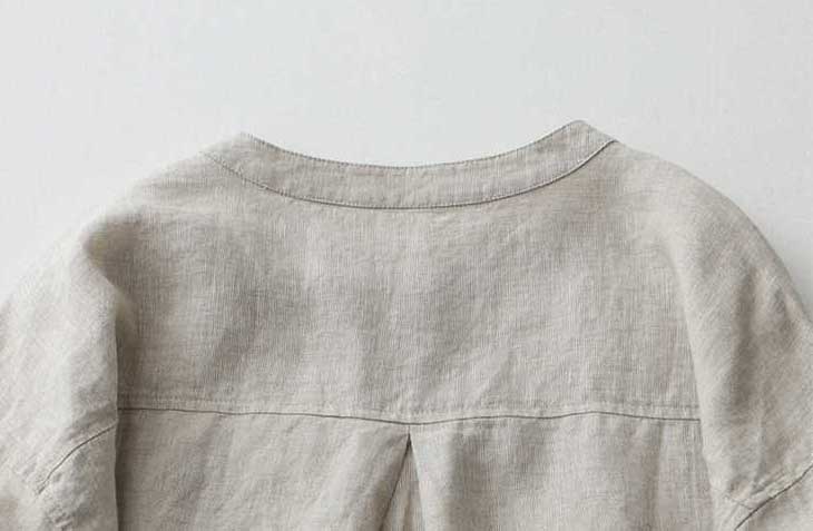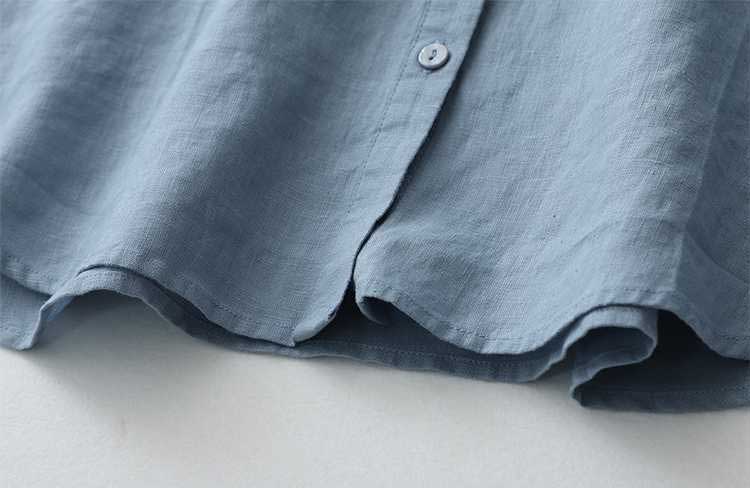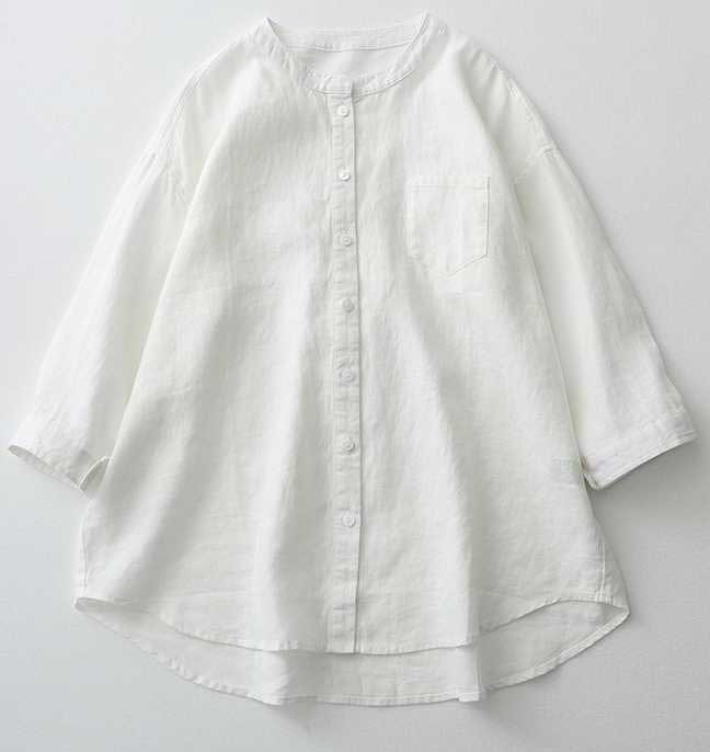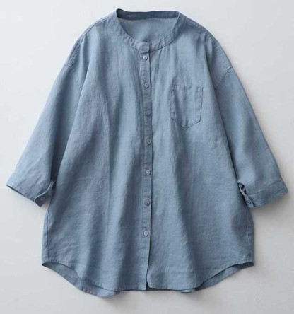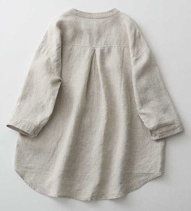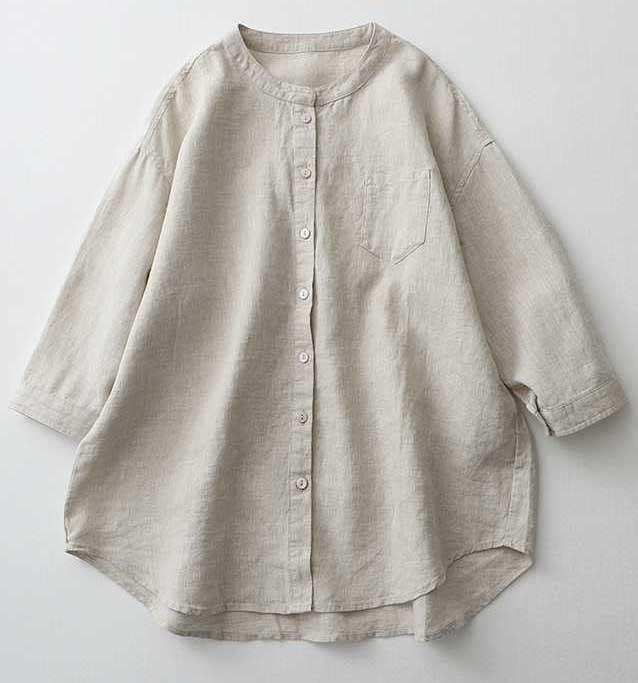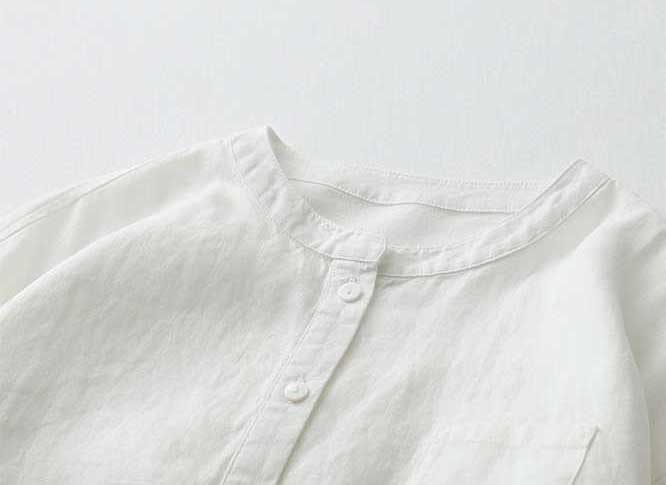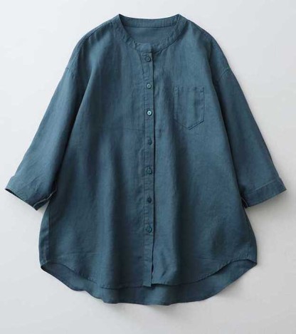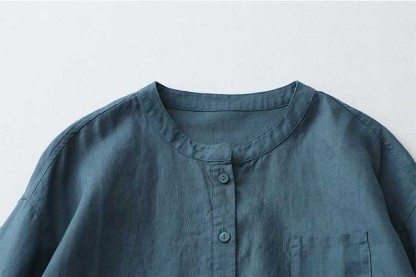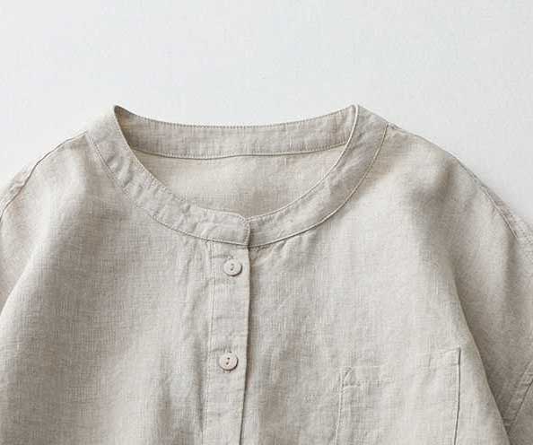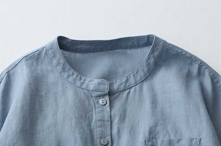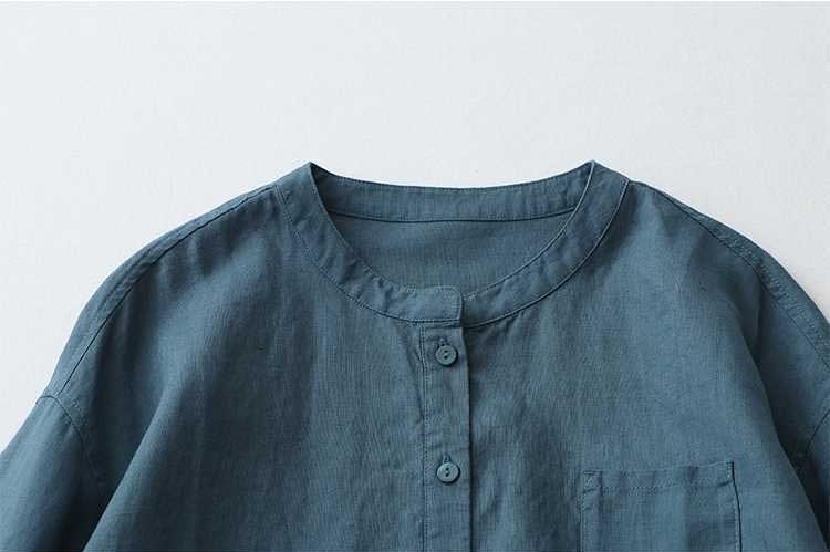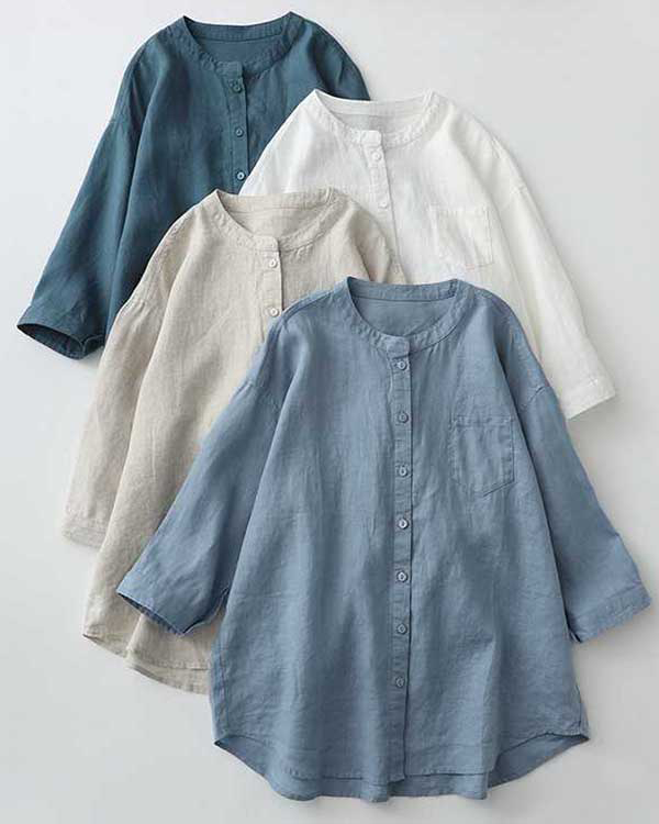 Casual Linen Stand Collar Three-quarter Sleeve Loose Shirt