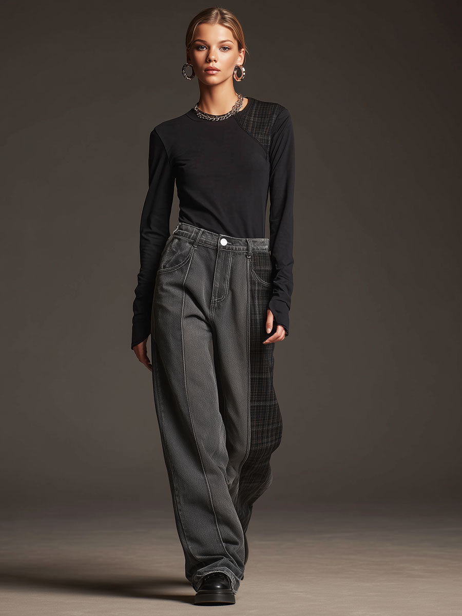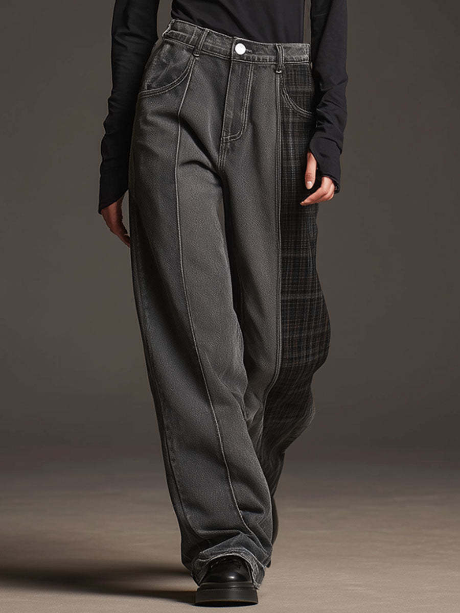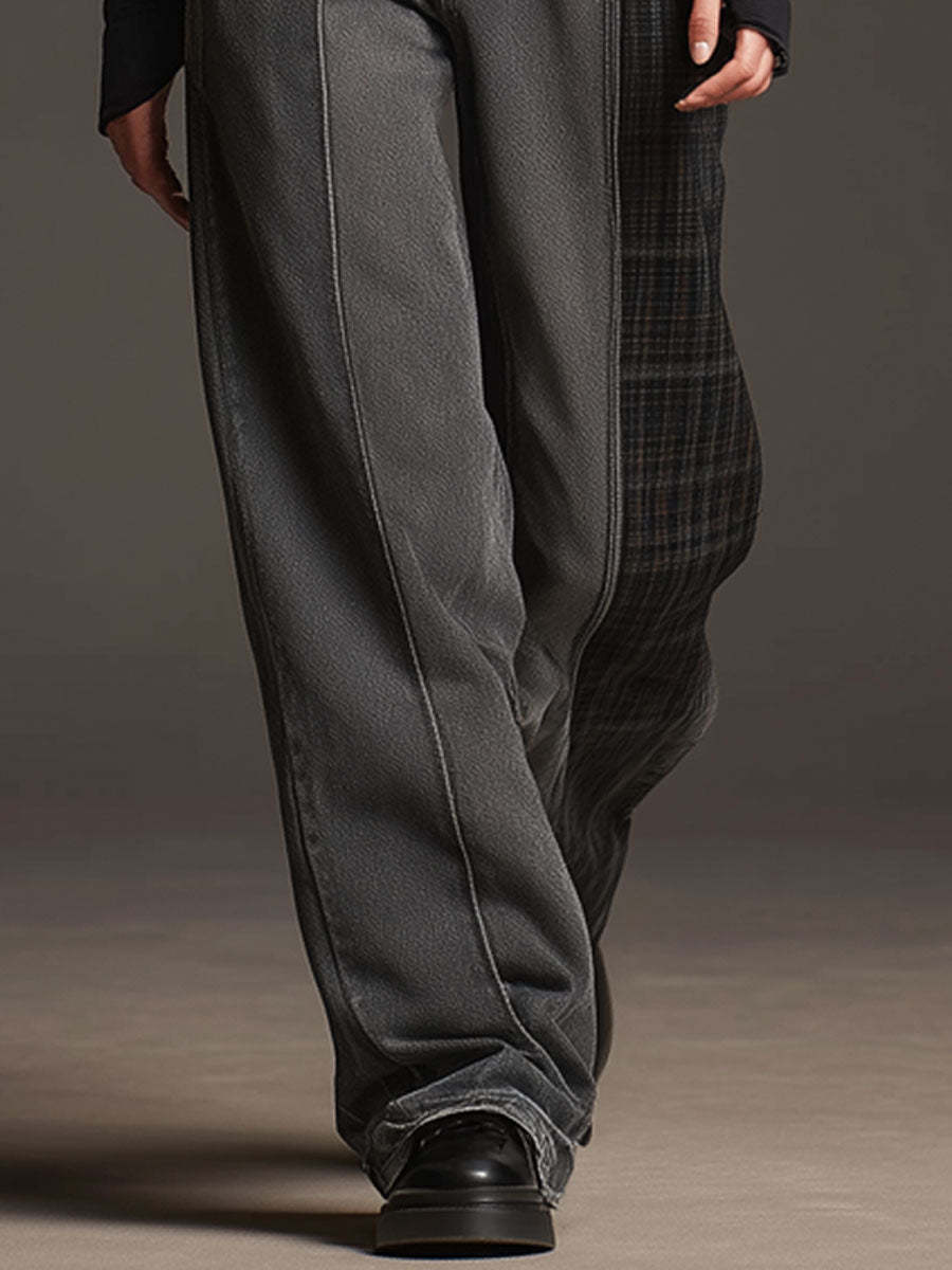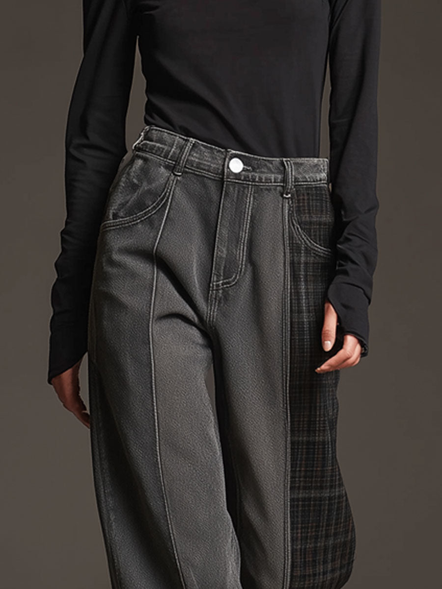Casual Retro Faux Suede Plaid Dark Gray Jeans