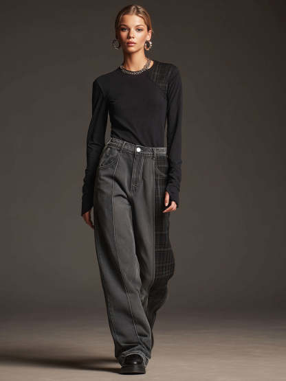 Designed for comfort and style, these jeans feature a classic fit that flatters various body types. The combination of faux suede and plaid gives them a distinctive appearance, perfect for those who enjoy incorporating vintage-inspired elements into their outfits. Pair these jeans with a simple top or sweater to let the unique texture and pattern shine, or add a leather jacket and boots for an edgier ensemble. Ideal for casual outings or relaxed gatherings, these jeans offer both comfort and a touch of retro flair.