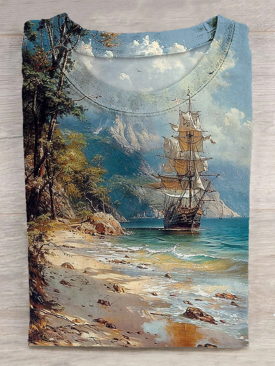Coast Printed Vintage Fashion Loose Short Sleeve T-Shirt