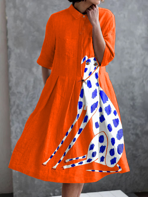 Holiday Animal Print Casual Pocket Half Sleeve Dress
