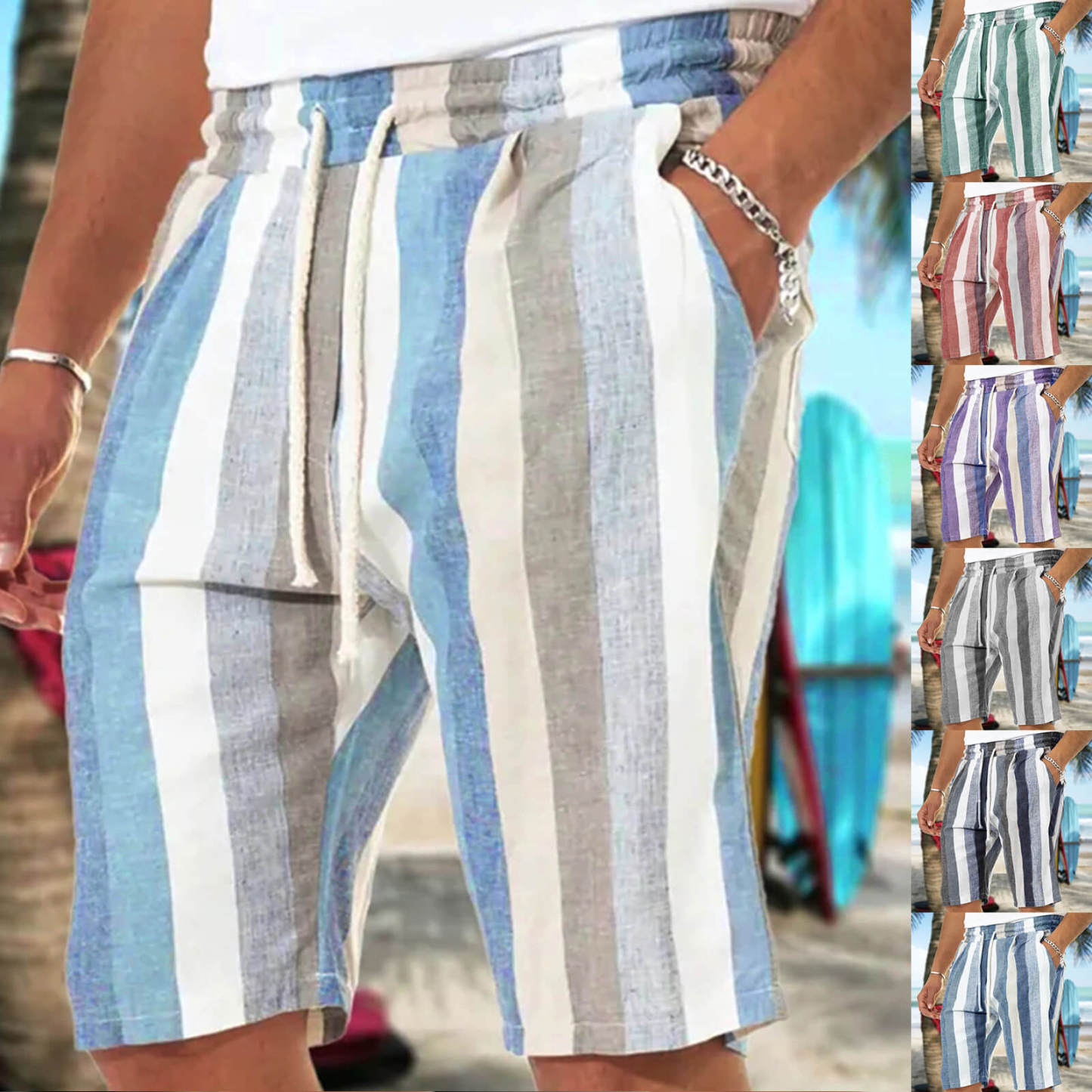 Men's Casual Lightweight Drawstring Elastic Waist Beach Shorts With Pockets