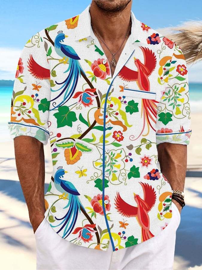 Men's Casual Hawaiian Parrot Print Lapel Shirt