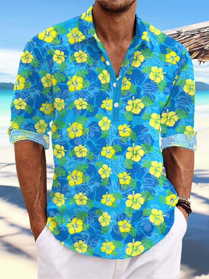 Men's Casual Hawaiian Print Stand Collar Shirt