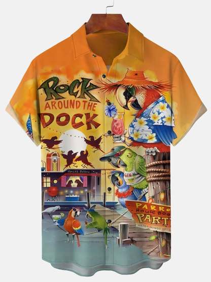 Men's Casual Vacation Hawaiian Parrot Print Shirt
