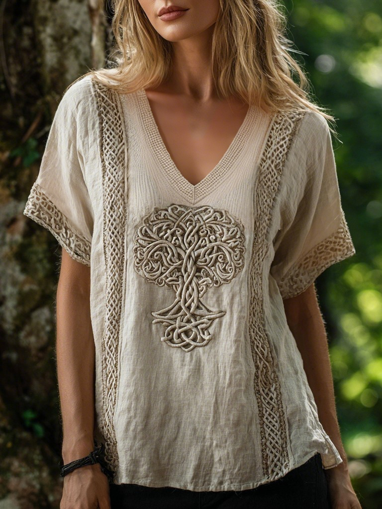 Men's Vintage Viking Life Of Tree Celtic Pattern Linen Blend Shirt