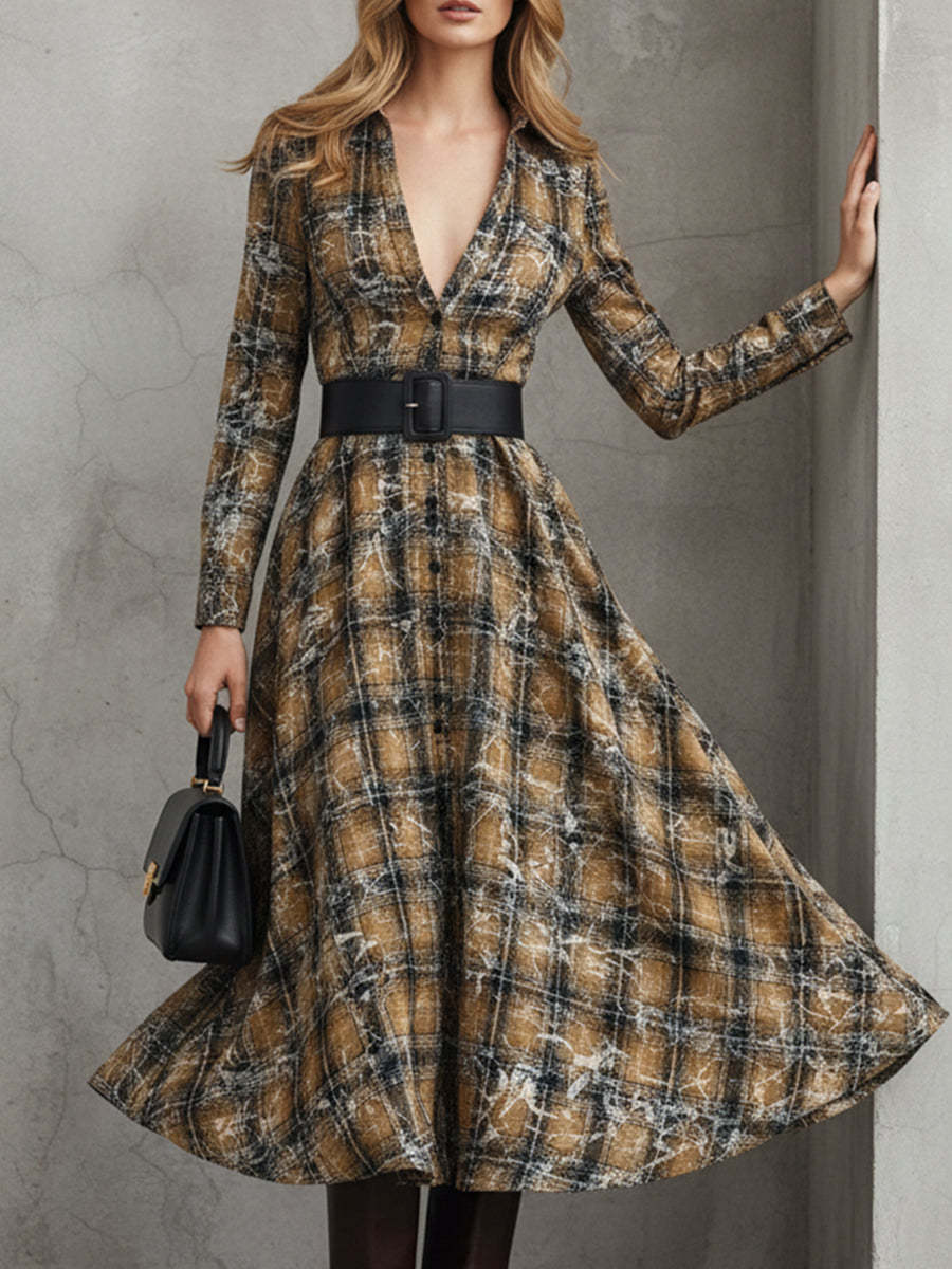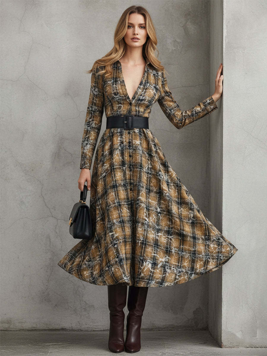 This retro yellow and black plaid print lapel maxi dress is a versatile piece, combining vintage charm with modern flair, making it a must-have for every fashionista. Its classic design ensures you look your best in any setting.
