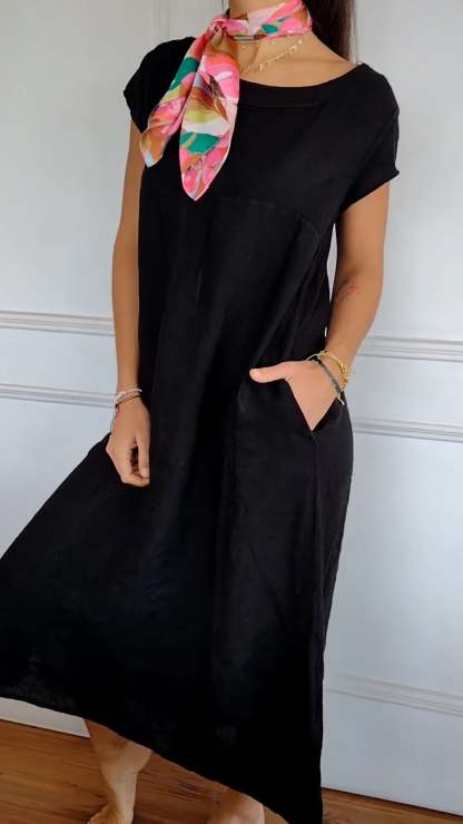 Round Neck Short Sleeve Pocket Dress