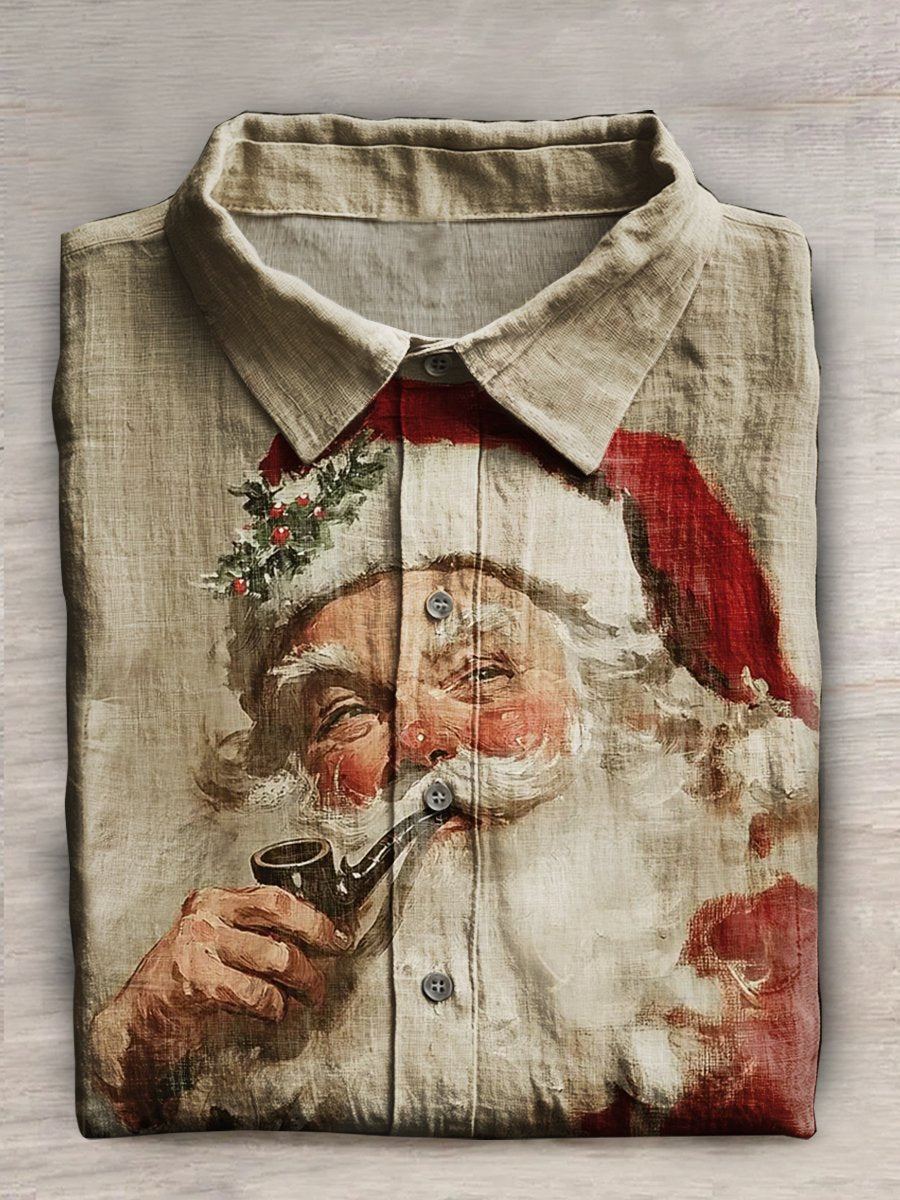 Santa Print Casual Cotton Shirt