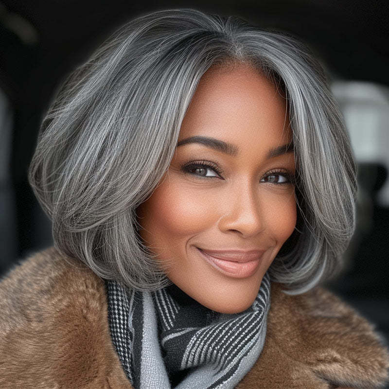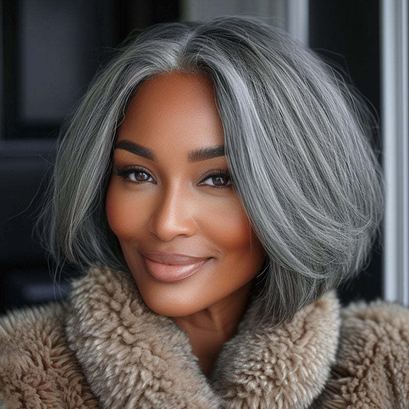 Classic Women's Hairstyle Salt and Pepper Straight Bob Real Hair Wear Go Glueless Lace Wigs For Mom