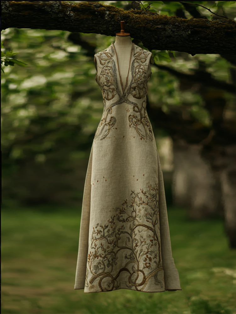 Viking-style Small V-neck Sleeveless Dress