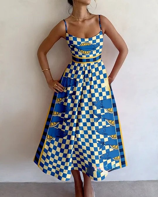 Vintage plaid fish print dress