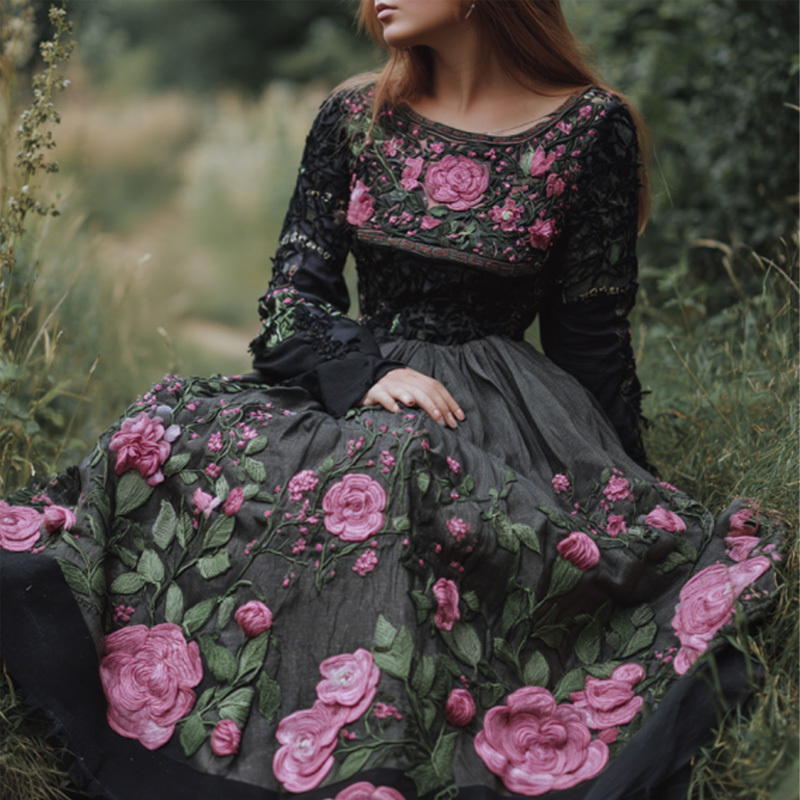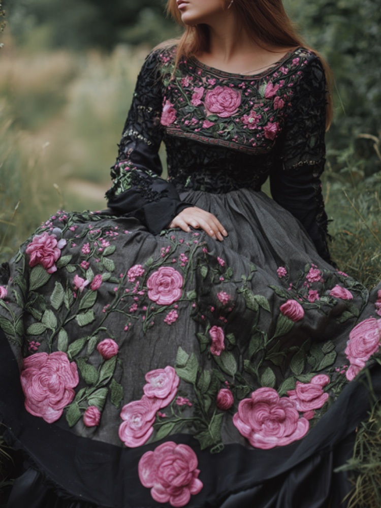 Women's Casual Retro Bohemian Embroidered Floral Print Dress