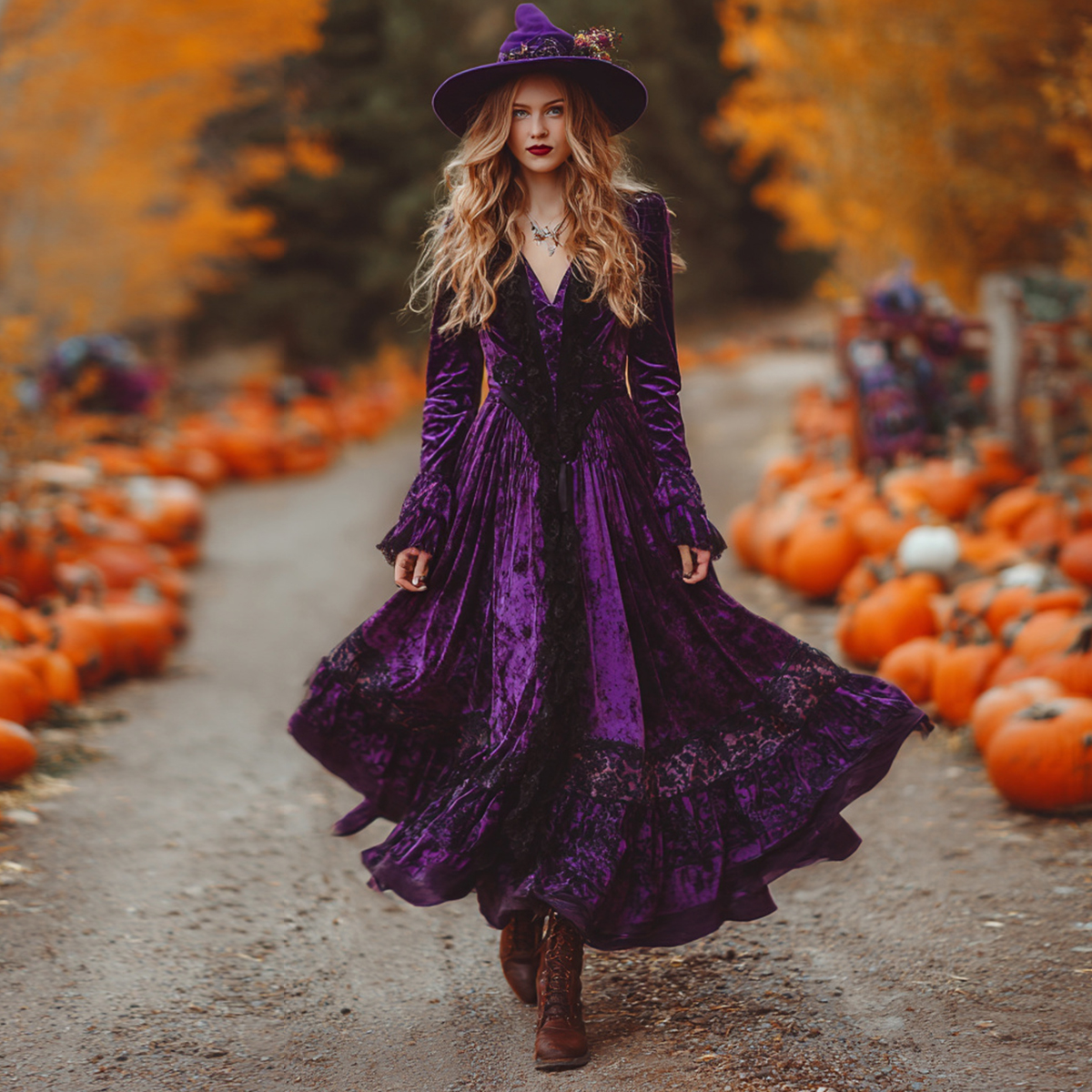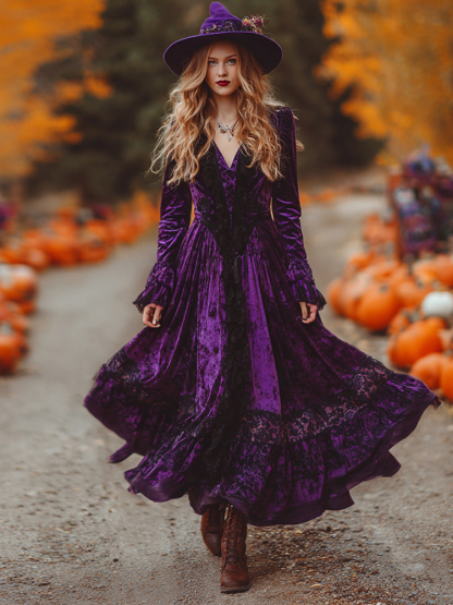 Women's Classic Velvet Halloween Art Comfy Velvet Maxi Dress