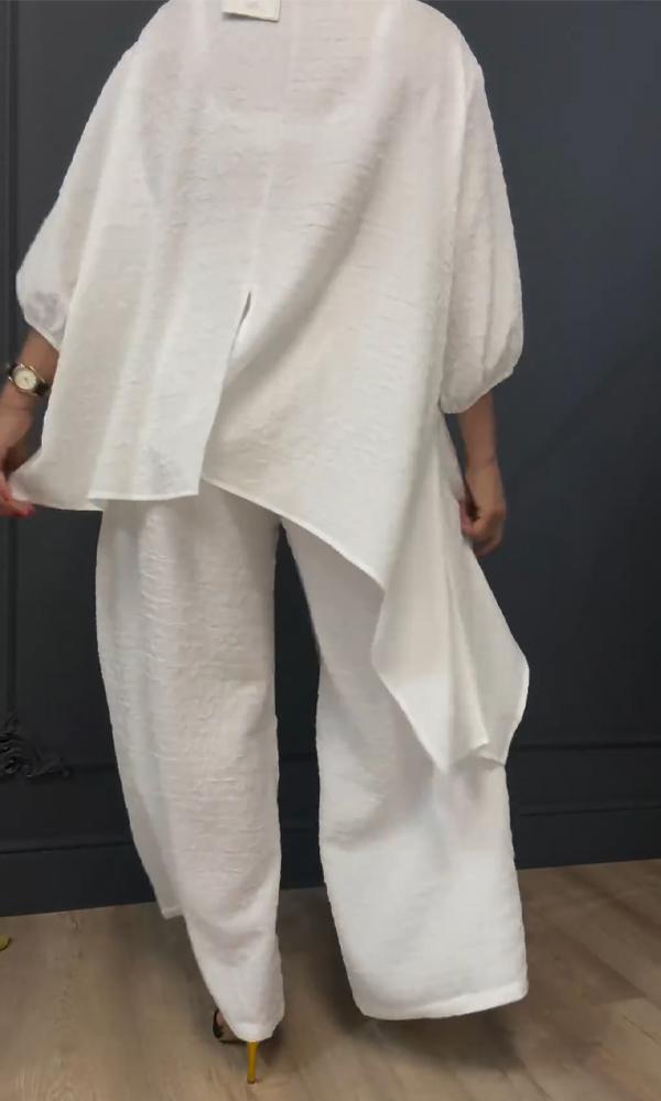 Women's Comfortable Cotton And Linen Irregular Top And Pants Two-Piece Set