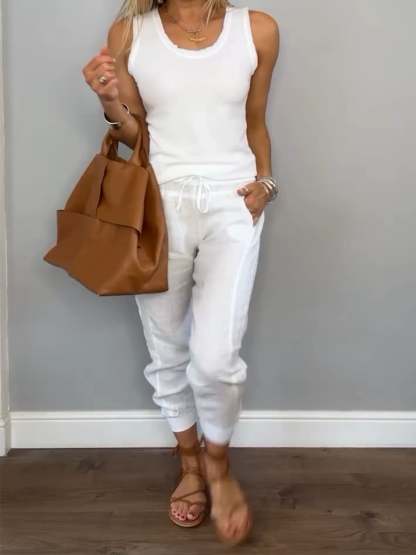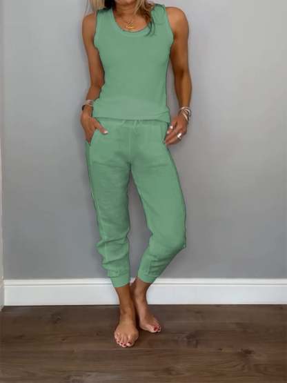Women's Cotton and Linen Casual Two-piece Set