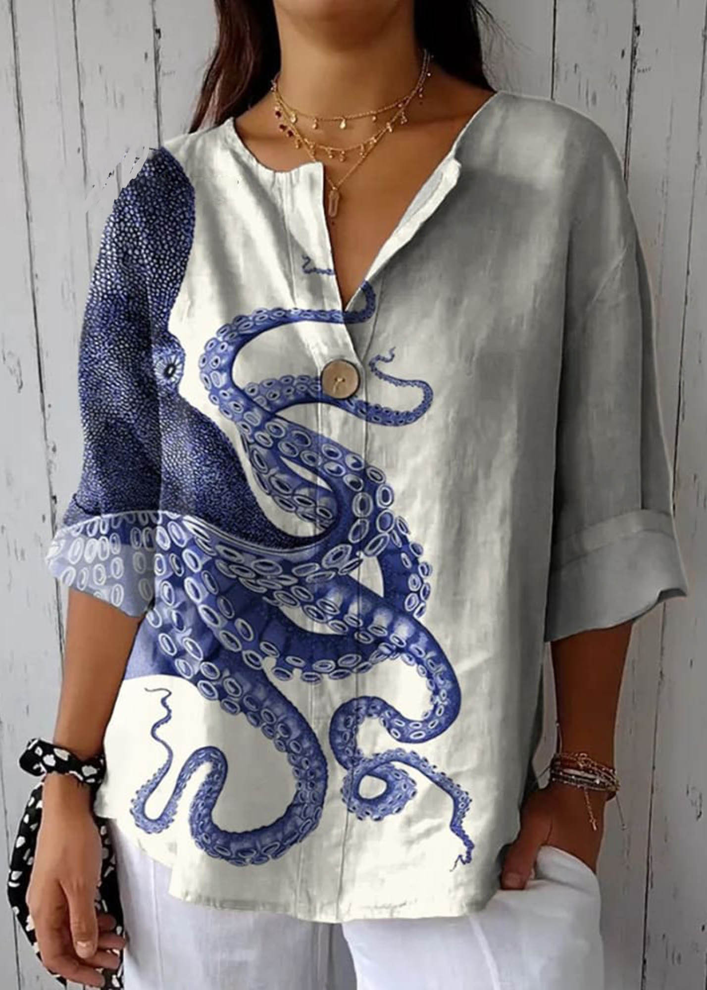 Women's Deep Sea Octopus Tentacles Casual Cotton Linen Shirt
