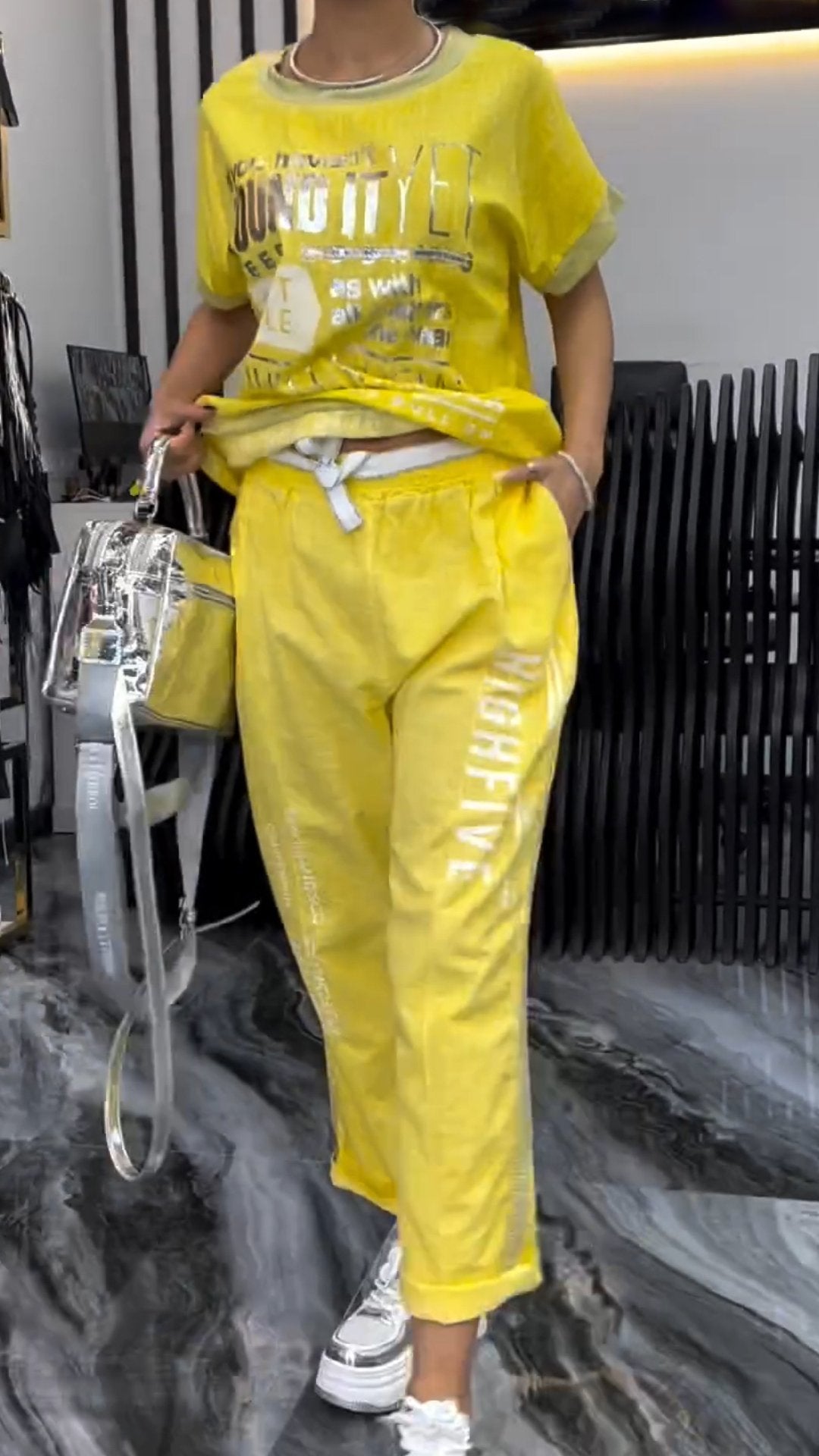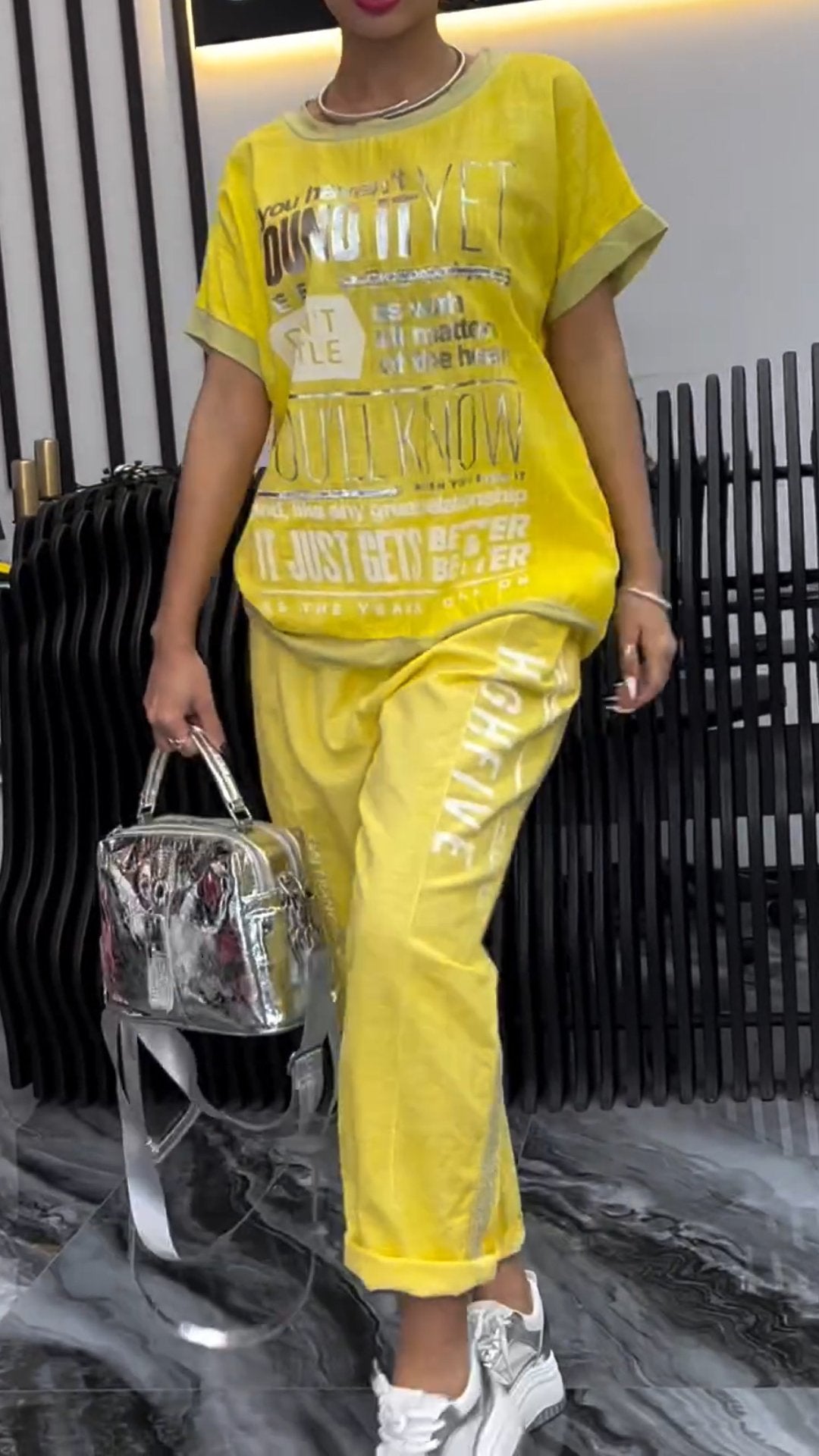 Women's Gilt Printed Round-neck Short-sleeved Suit