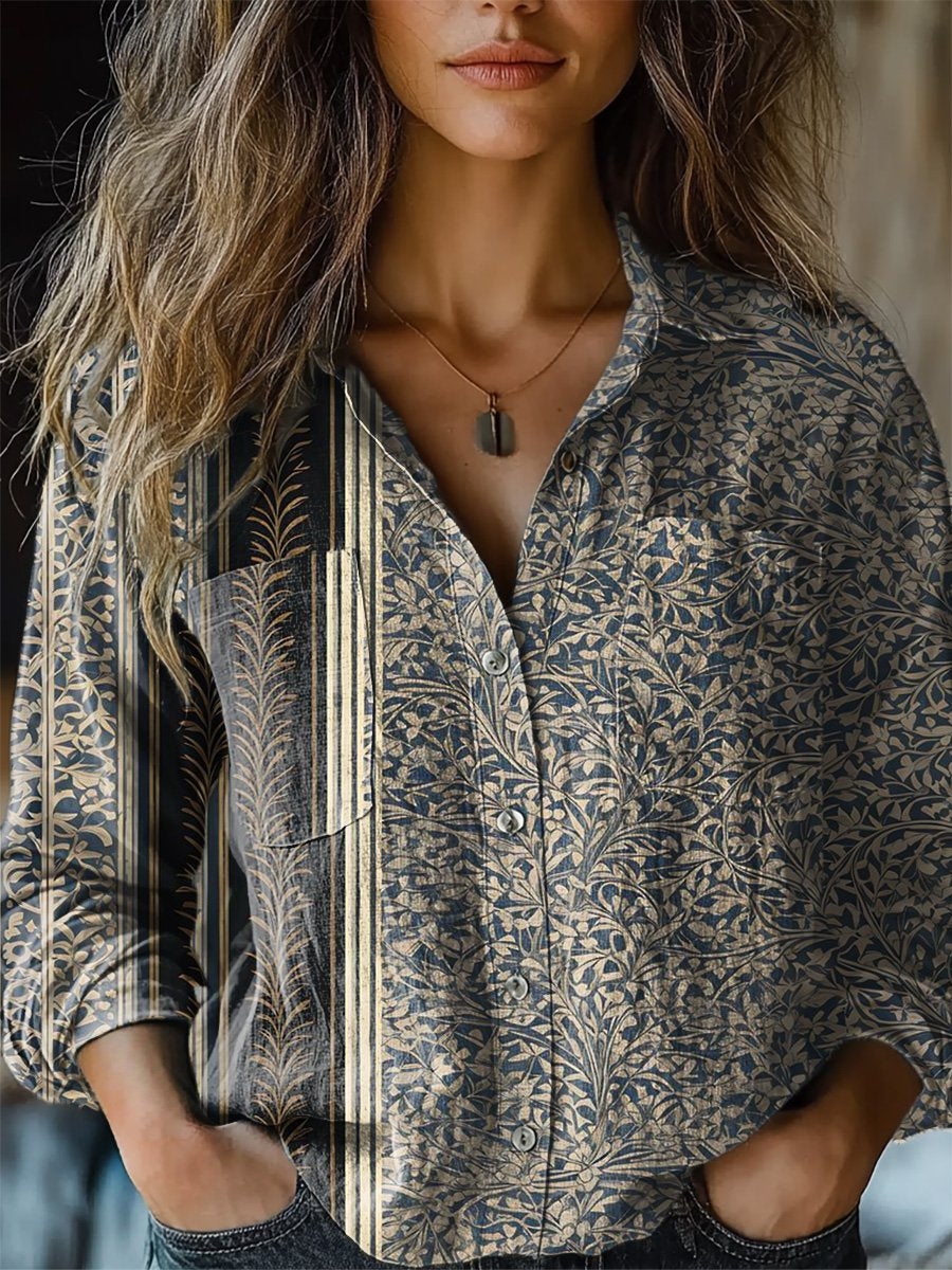 Women's Retro Floral Print Casual Long Sleeve Comfortable Cotton Shirt