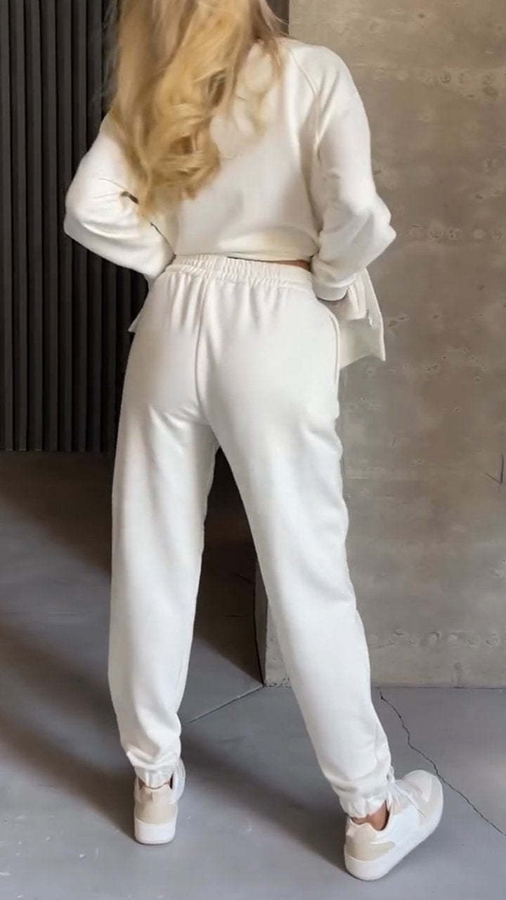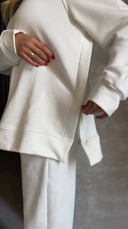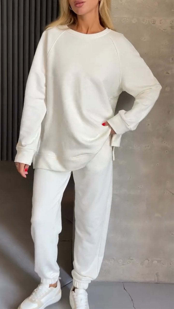 Women's Round Neck Long Side Zipper Design Casual Sweatshirt Suit