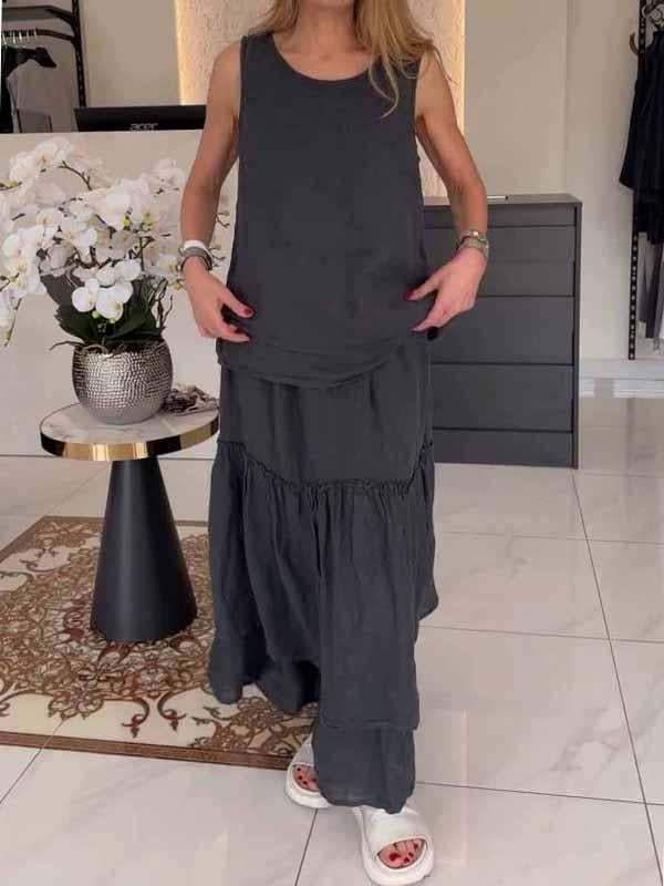 Women's Round Neck Solid Color Loose Two-piece Suit