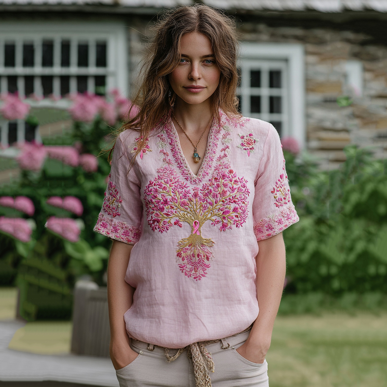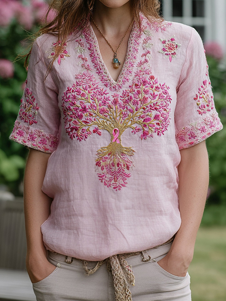 Women's Tree Of Life Breast Cancer Ribbon T-shirt