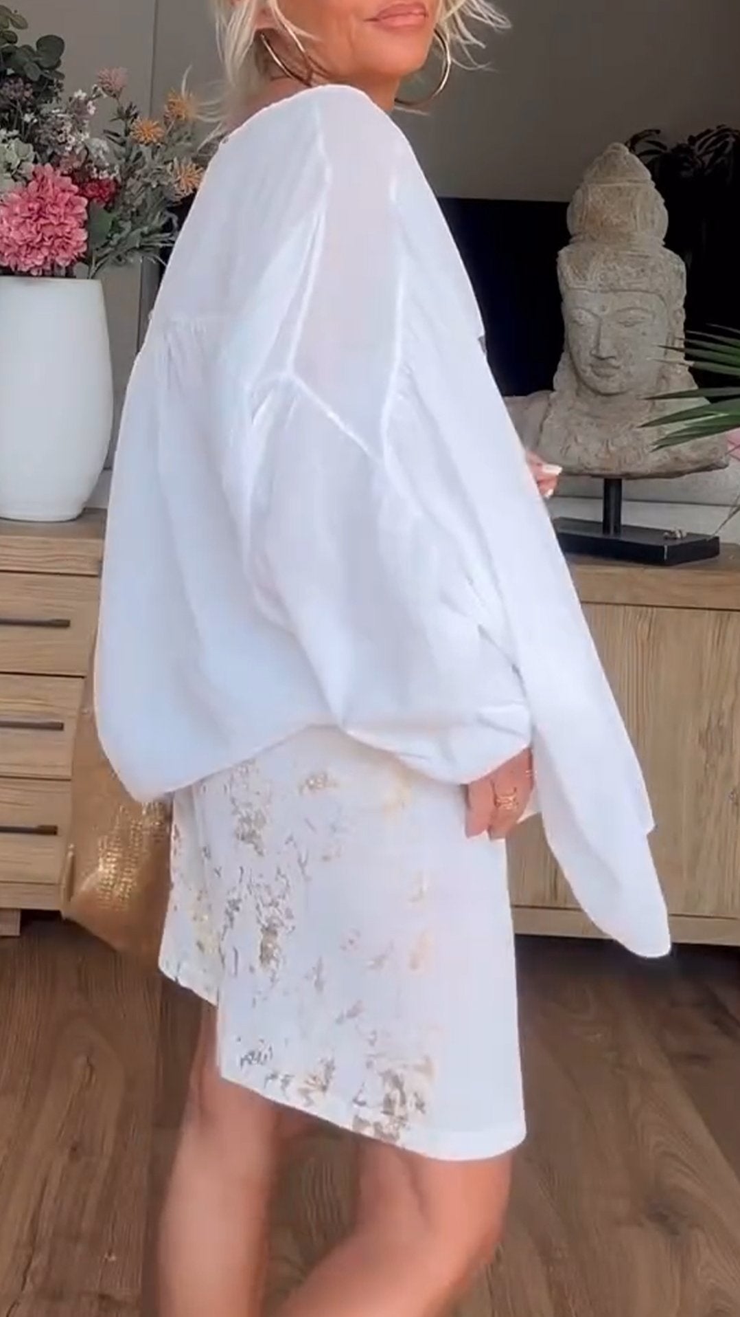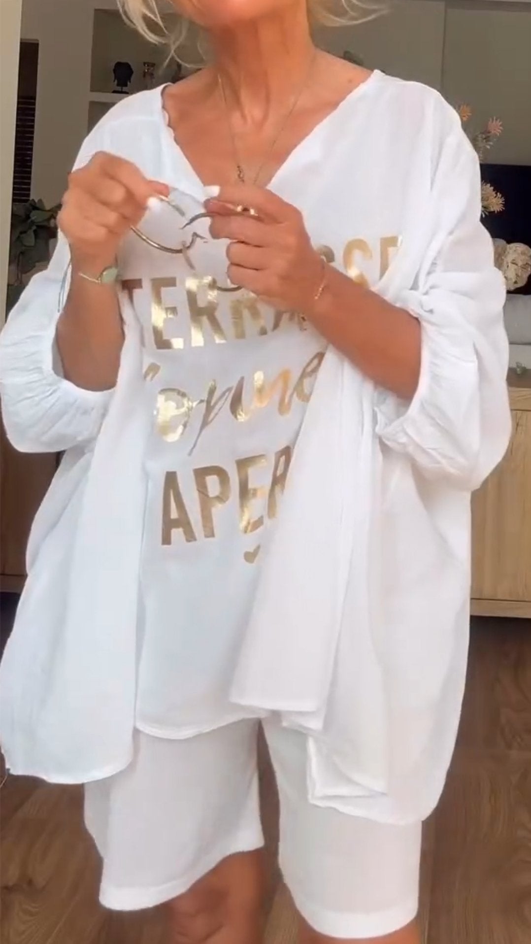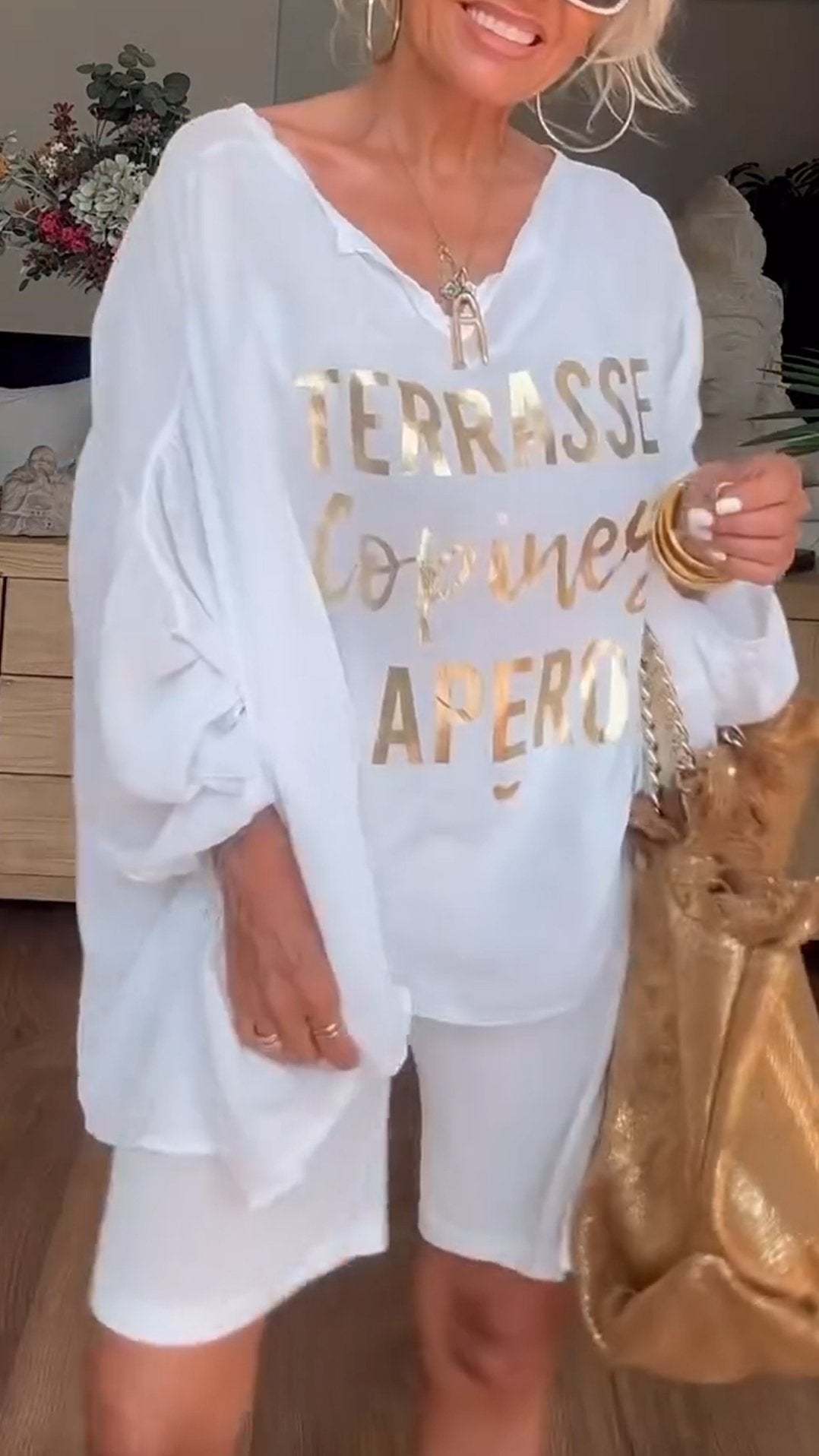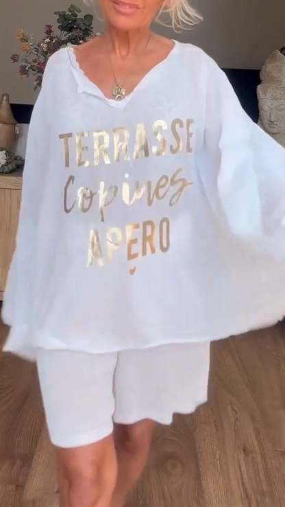 Women's V-neck Gold-stamped Long-sleeved Casual Suit