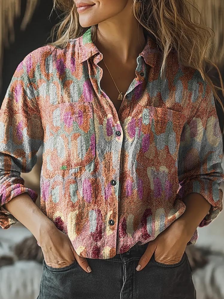 Women's Vintage Ethnic Geometric Art Print Long Sleeve Comfortable Cotton Shirt