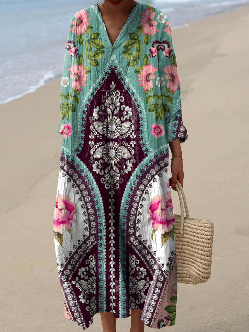 Women's Vintage Lovely Floral Art Print Cotton Dress