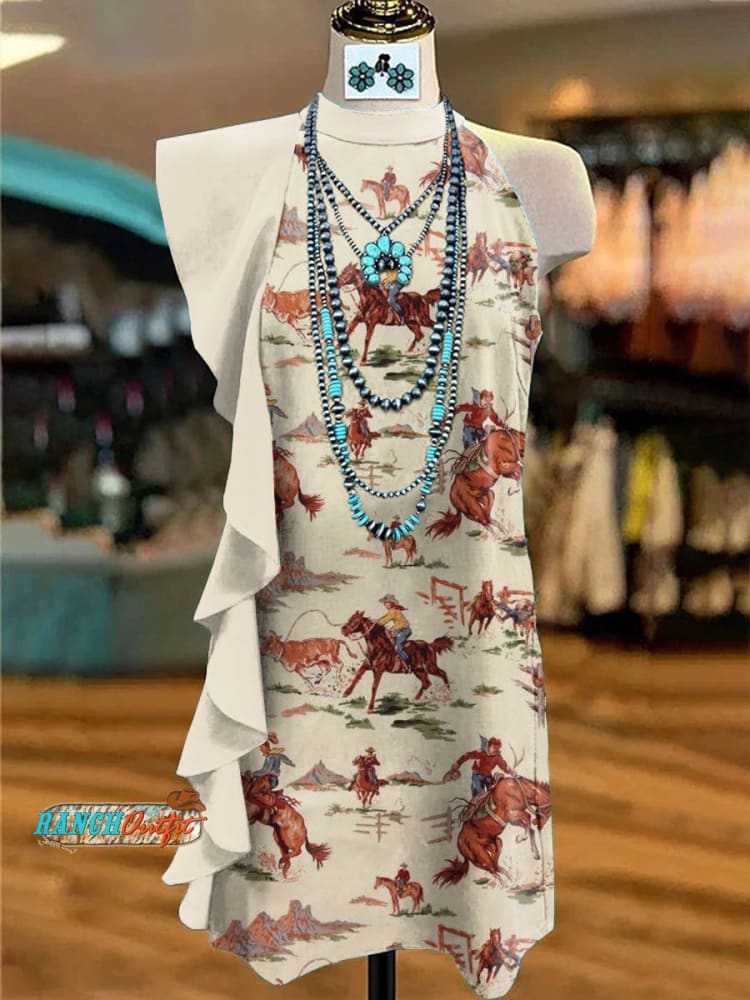 Women's Vintage Print V-Neck Button Pocket Cotton Dress