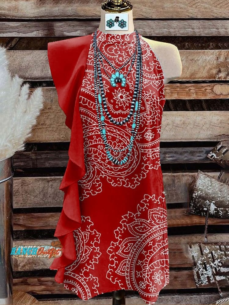 Women's Vintage Print V-Neck Button Pocket Cotton Dress