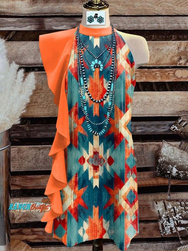 Women's Vintage Print V-Neck Button Pocket Cotton Dress