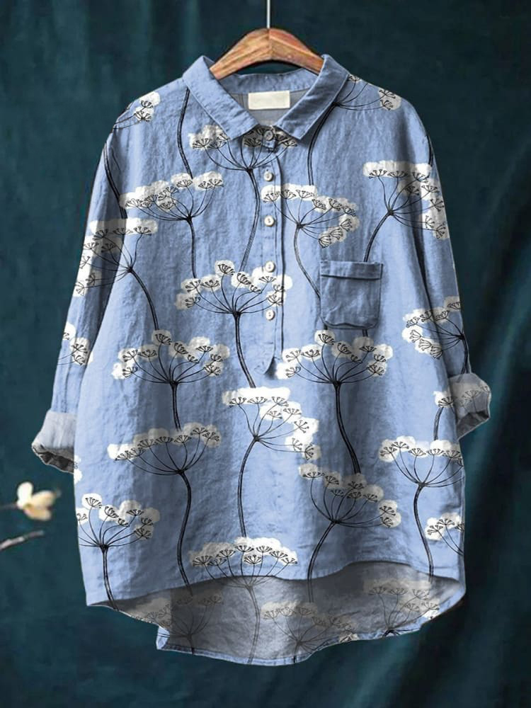 Babysbreath Pattern Casual Cotton And Linen Shirt