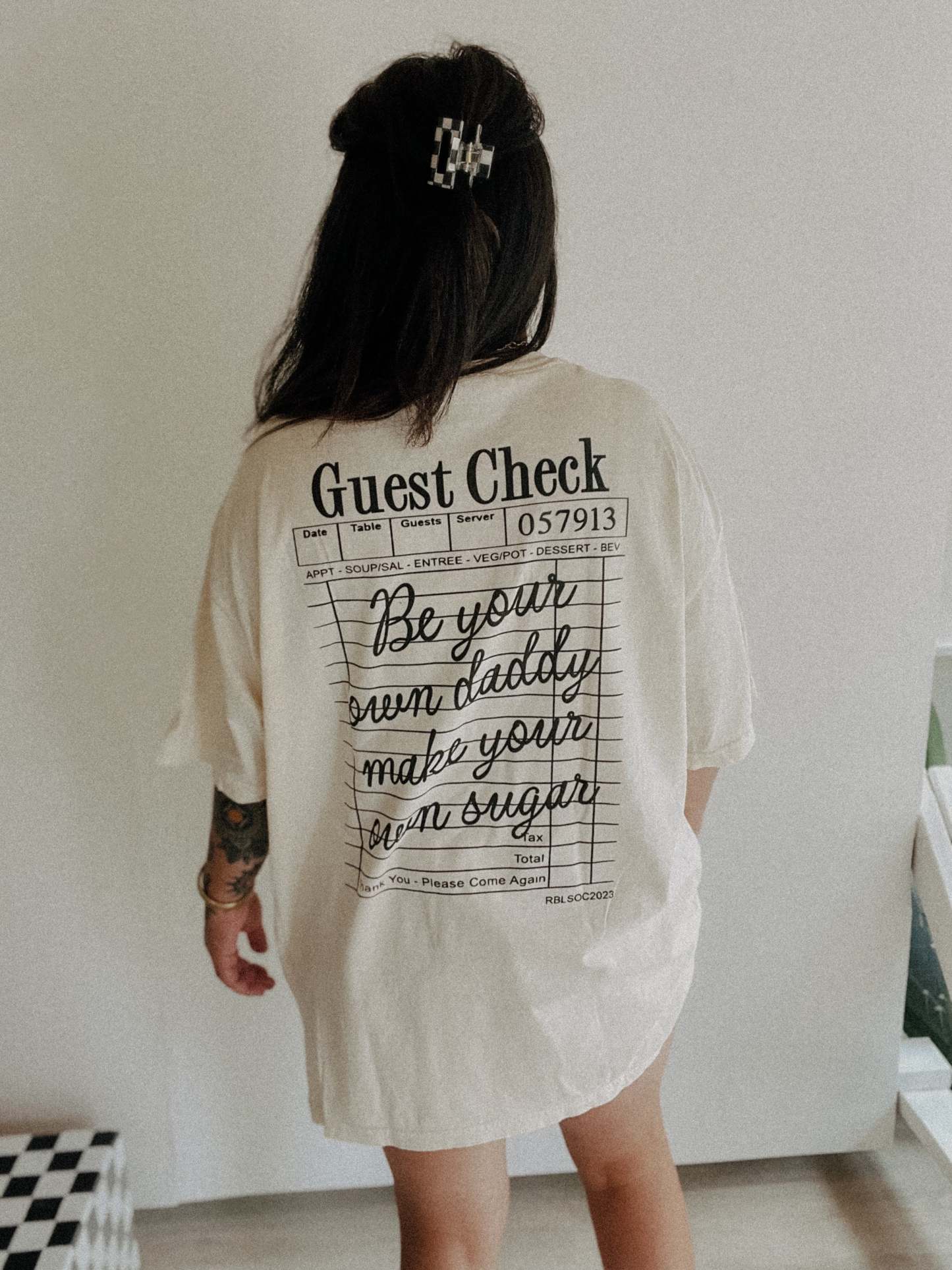 Model is wearing a size XL for an oversized fit