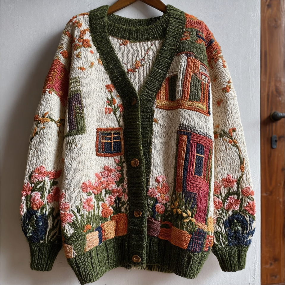 Bohemian Style Garden Pattern Design Women's Knitted Sweater Coat