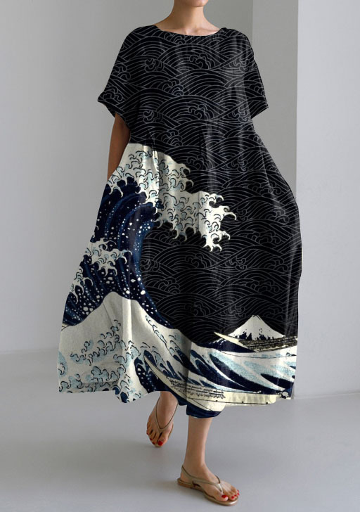 Casual Japanese Style Marine Loose Short-sleeved Dress