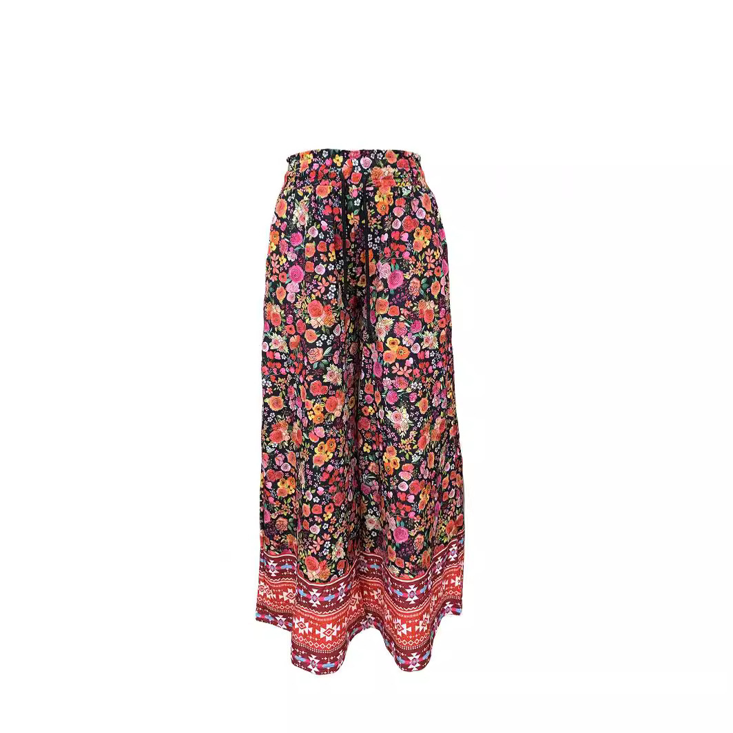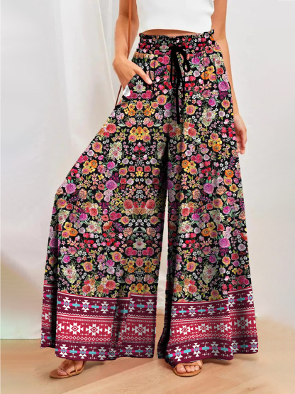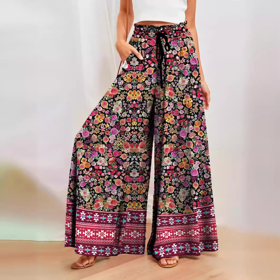 Fashion Women's Casual Printed Holiday Bohemian Wide Leg Pants