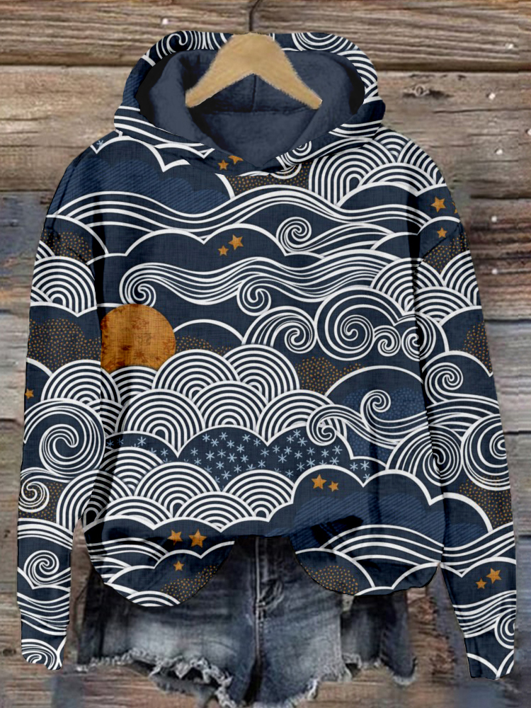 Full Moon and Stars Over the Clouds Vintage Cozy Hoodie
