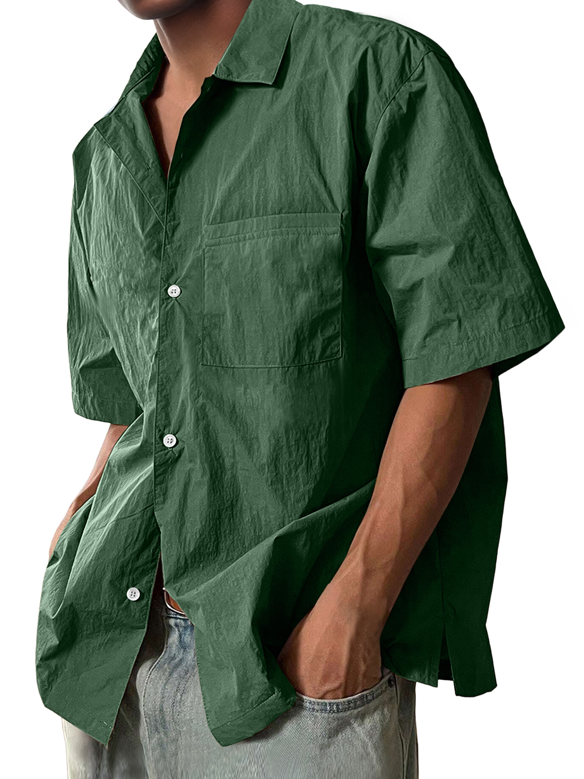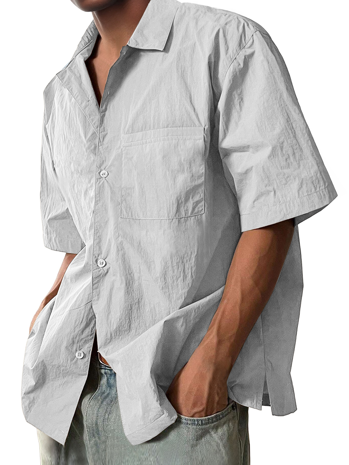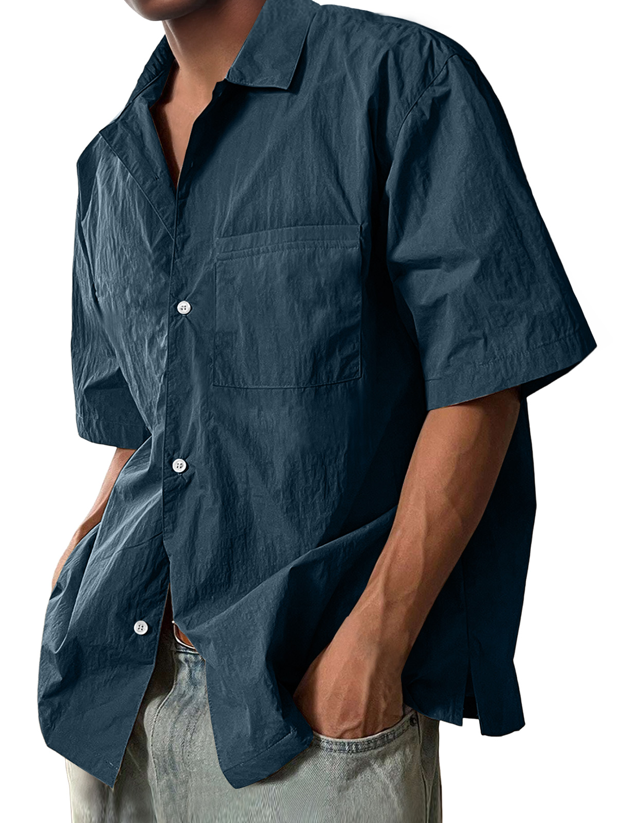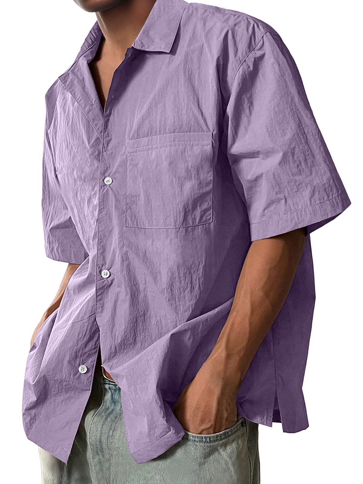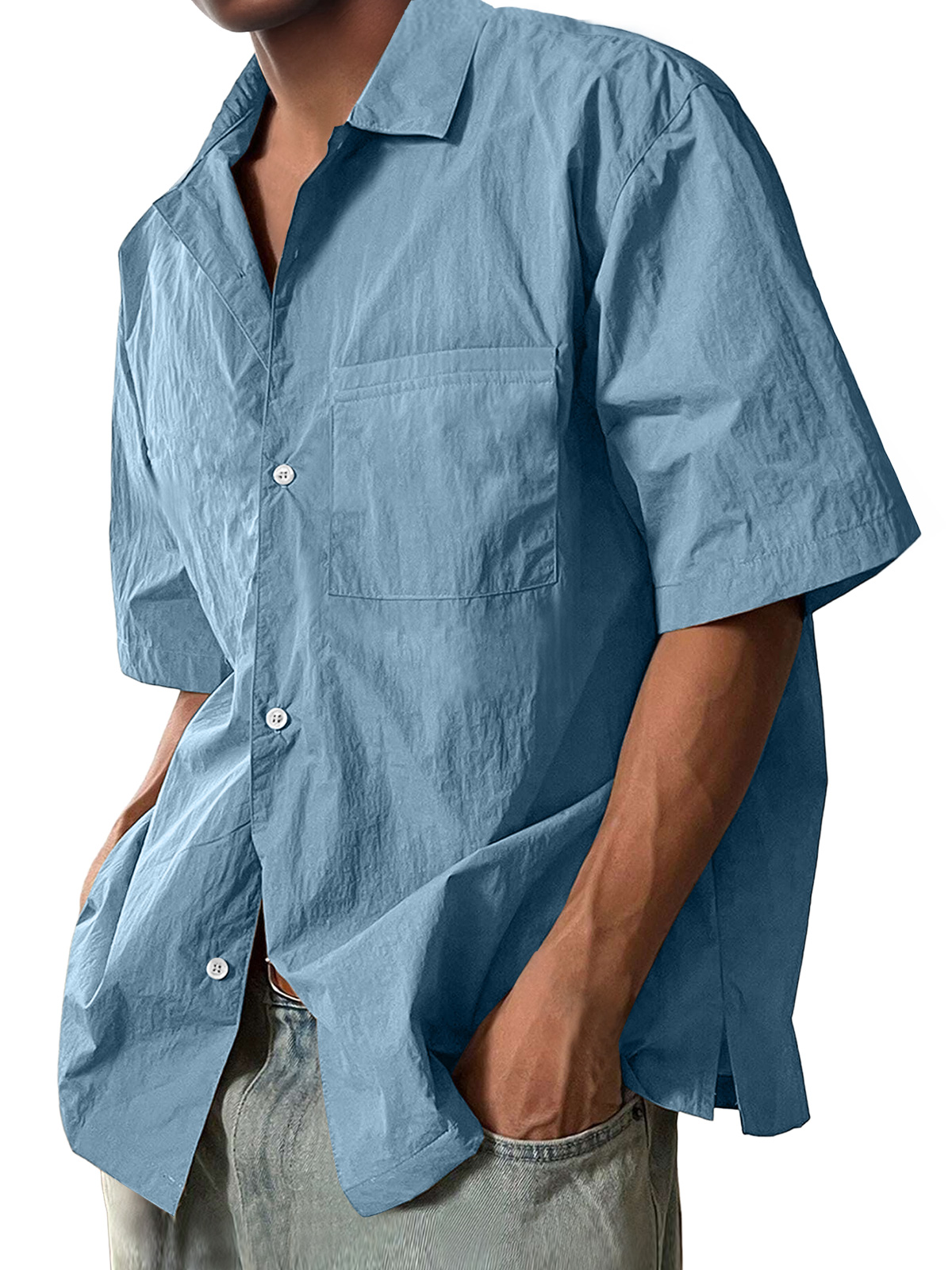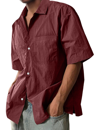 Men's Casual Lapel Pocket Comfort Short Sleeve Shirt